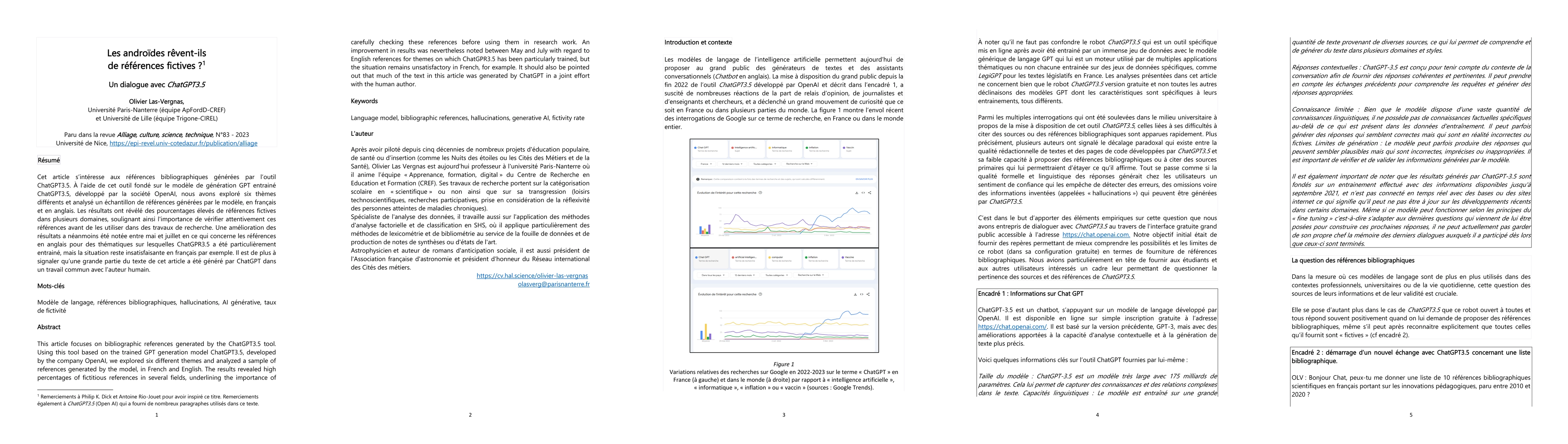 This article focuses on bibliographic references generated by the ChatGPT3.5 tool. Using this tool based on the trained GPT generation model ChatGPT3.5, developed by the company OpenAI, we explored six different themes and analyzed a sample of references generated by the model, in French and English. The results revealed high percentages of fictitious references in several fields, underlining the importance of carefully checking these references before using them in research work. An improvement in results was nevertheless noted between May and July with regard to English references for themes on which ChatGPR3.5 has been particularly trained, but the situation remains unsatisfactory in French, for example. It should also be pointed out that much of the text in this article was generated by ChatGPT in a joint effort with the human author.