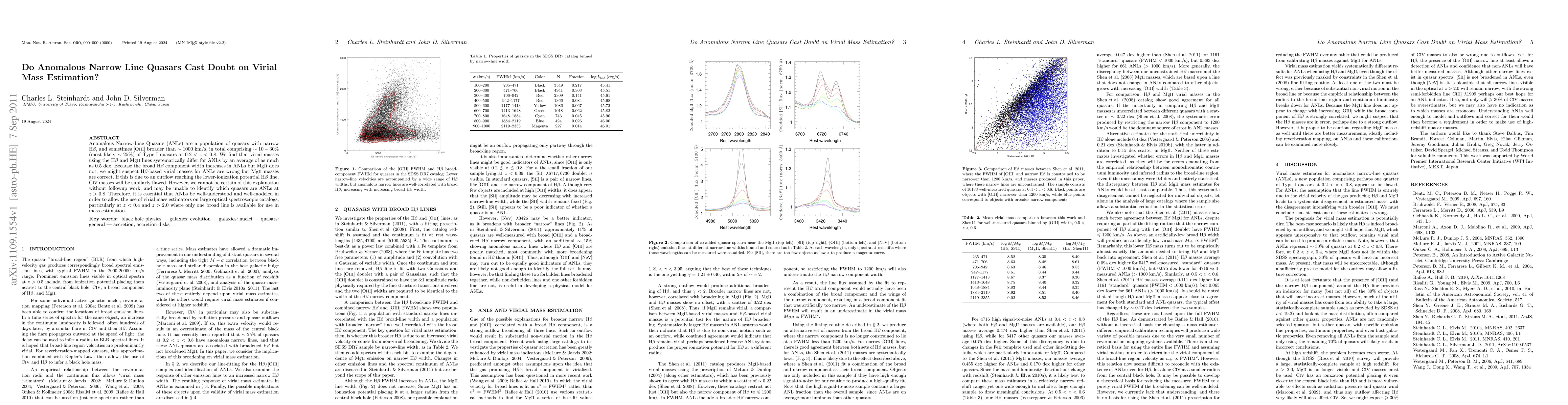 Anomalous Narrow-Line Quasars (ANLs) are a population of quasars with narrow H\beta, and sometimes [O III] broader than ~1000 km/s, in total comprising \sim 10-30% (most likely ~25%) of Type I quasars at 0.2 < z < 0.8. We find that virial masses using the H\beta and Mg II lines systematically differ for ANLs by an average of as much as 0.5 dex. Because the broad H\beta component width increases in ANLs but Mg II does not, we might suspect H\beta-based virial masses for ANLs are wrong but Mg II masses are correct. If this is due to an outflow reaching the lower-ionization potential H\beta line, C IV masses will be similarly flawed. However, we cannot be certain of this explanation without followup work, and may be unable to identify which quasars are ANLs at z > 0.8. Therefore, it is essential that ANLs be well-understood and well-modeled in order to allow the use of virial mass estimators on large optical spectroscopic catalogs, particularly at z < 0.4 and z > 2.0 where only one broad line is available for use in mass estimation.