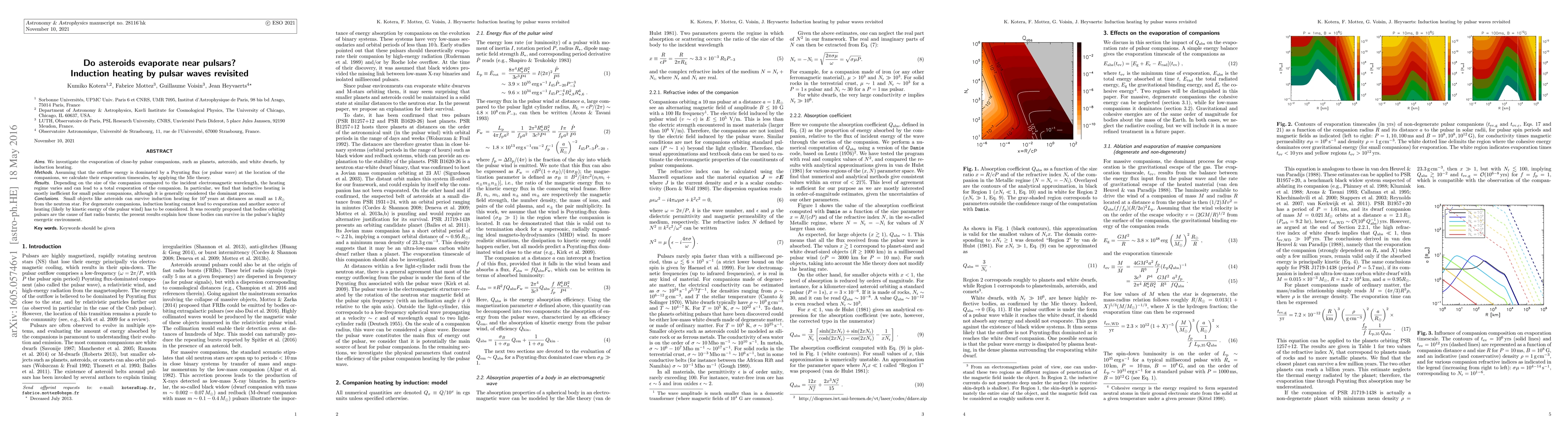 We investigate the evaporation of close-by pulsar companions, such as planets, asteroids, and white dwarfs, by induction heating. Assuming that the outflow energy is dominated by a Poynting flux (or pulsar wave) at the location of the companions, we calculate their evaporation timescales, by applying the Mie theory. Depending on the size of the companion compared to the incident electromagnetic wavelength, the heating regime varies and can lead to a total evaporation of the companion. In particular, we find that inductive heating is mostly inefficient for small pulsar companions, although it is generally considered the dominant process. Small objects like asteroids can survive induction heating for $10^4\,$years at distances as small as $1\,R_\odot$ from the neutron star. For degenerate companions, induction heating cannot lead to evaporation and another source of heating (likely by kinetic energy of the pulsar wind) has to be considered. It was recently proposed that bodies orbiting pulsars are the cause of fast radio bursts; the present results explain how those bodies can survive in the pulsar's highly energetic environment.