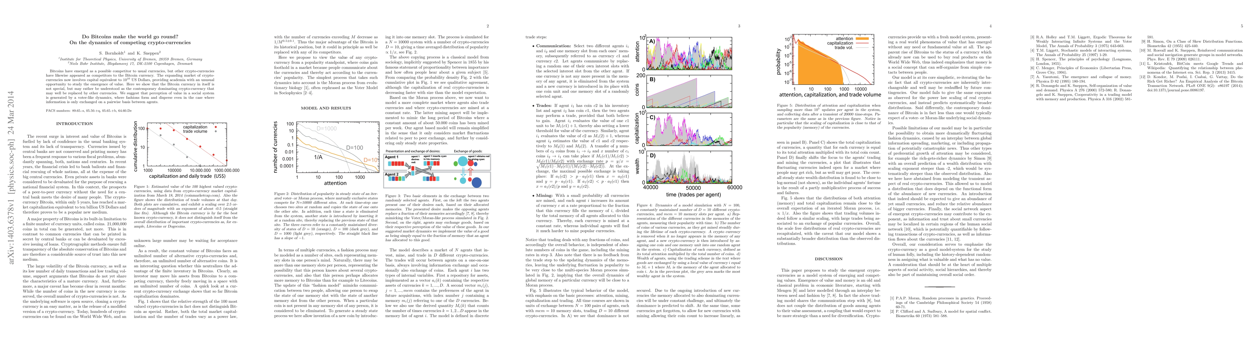 This paper explores the dynamics of competing cryptocurrencies, arguing that Bitcoin is not inherently special but currently dominates due to social perception and dynamics. It suggests that value perception in crypto-currencies is shaped by a voter-like process where trends emerge and fade based on pairwise information exchange.