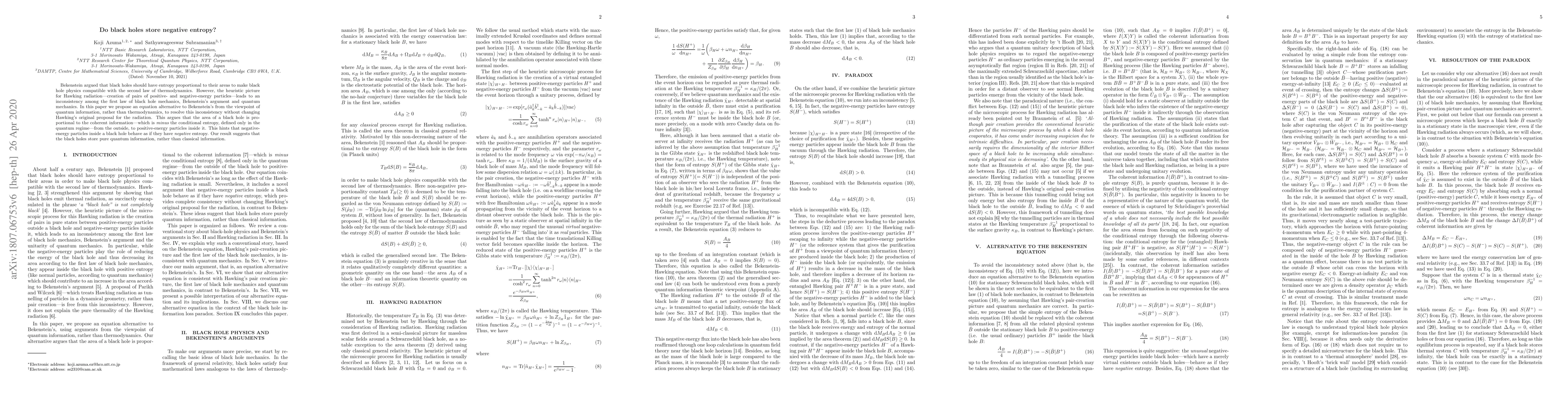 This paper proposes an alternative to Bekenstein's entropy formula for black holes, suggesting that black holes store pure quantum information rather than classical information, and hints that negative-energy particles inside them behave as if they have negative entropy. This approach resolves inconsistencies between black hole mechanics, thermodynamics, and quantum mechanics.