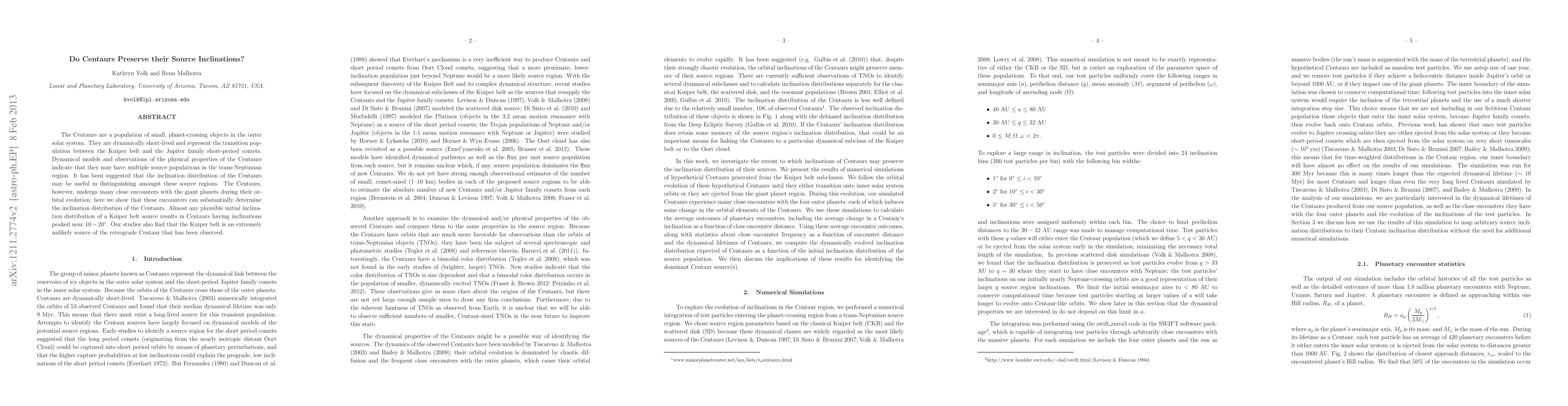 This paper investigates whether Centaurs, small planet-crossing objects in the outer solar system, retain their initial inclinations from their source regions. It finds that close encounters with giant planets significantly alter their inclinations, making it difficult to distinguish their source populations based on inclination alone.