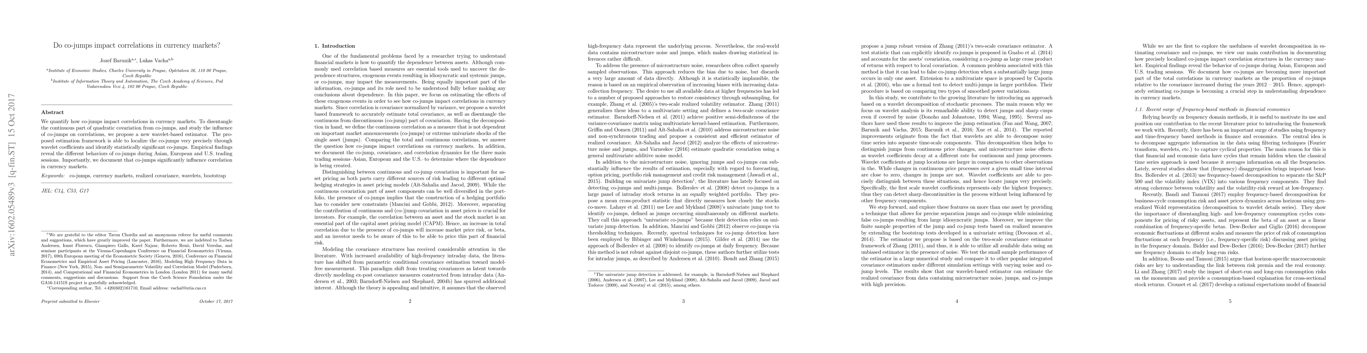 This paper proposes a wavelet-based estimator to precisely localize and identify statistically significant co-jumps, finding that co-jumps significantly impact correlations in currency markets, with different behaviors observed across trading sessions.