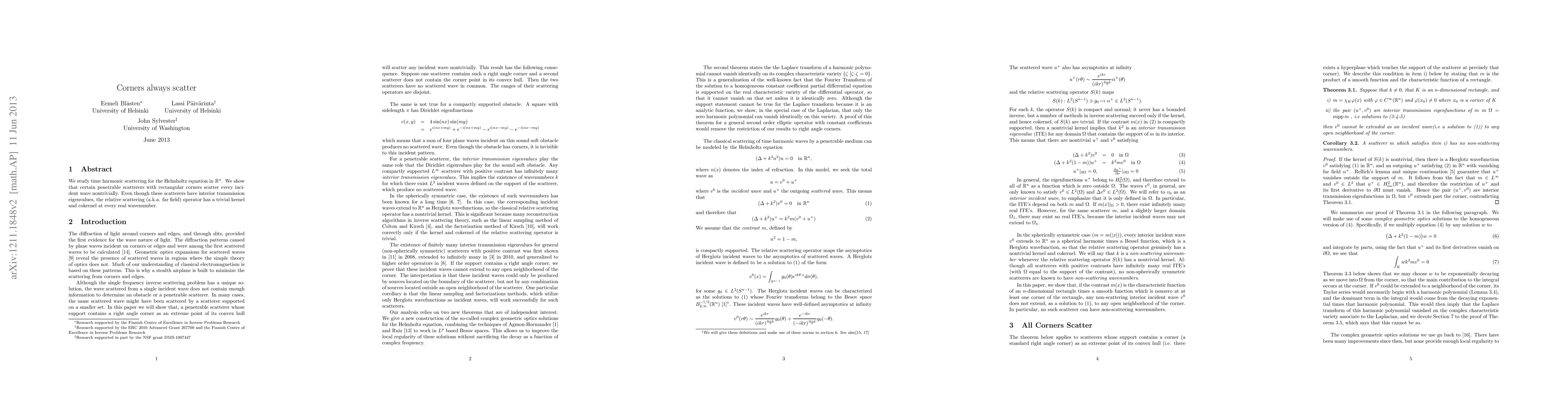 We study time harmonic scattering for the Helmholtz equation in Rn. We show that certain penetrable scatterers with rectangular corners scatter every incident wave nontrivially. Even though these scatterers have interior transmission eigenvalues, the relative scattering (a.k.a. far field) operator has a trivial kernel and cokernel at every real wavenumber.