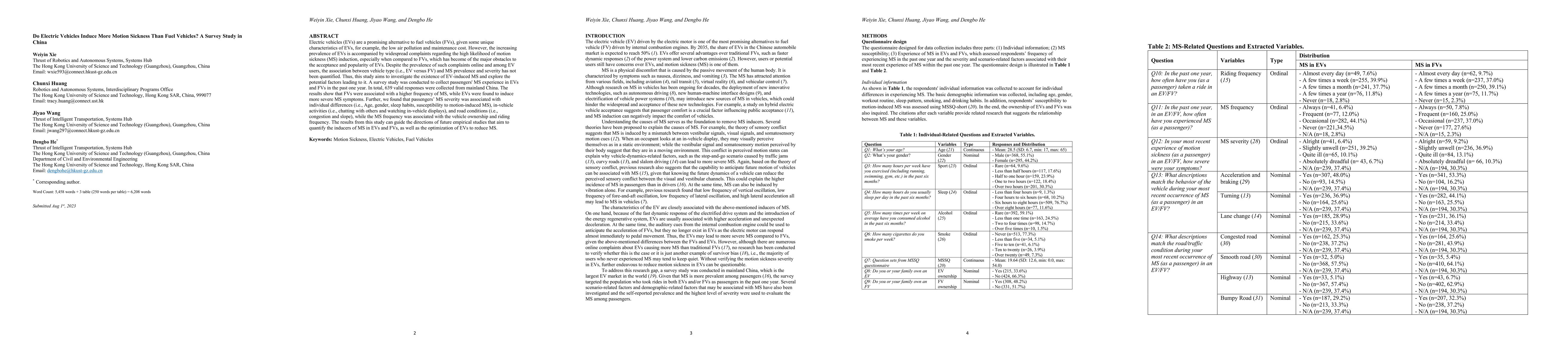 Electric vehicles (EVs) are a promising alternative to fuel vehicles (FVs), given some unique characteristics of EVs, for example, the low air pollution and maintenance cost. However, the increasing prevalence of EVs is accompanied by widespread complaints regarding the high likelihood of motion sickness (MS) induction, especially when compared to FVs, which has become one of the major obstacles to the acceptance and popularity of EVs. Despite the prevalence of such complaints online and among EV users, the association between vehicle type (i.e., EV versus FV) and MS prevalence and severity has not been quantified. Thus, this study aims to investigate the existence of EV-induced MS and explore the potential factors leading to it. A survey study was conducted to collect passengers' MS experience in EVs and FVs in the past one year. In total, 639 valid responses were collected from mainland China. The results show that FVs were associated with a higher frequency of MS, while EVs were found to induce more severe MS symptoms. Further, we found that passengers' MS severity was associated with individual differences (i.e., age, gender, sleep habits, susceptibility to motion-induced MS), in-vehicle activities (i.e., chatting with others and watching in-vehicle displays), and road conditions (i.e., congestion and slope), while the MS frequency was associated with the vehicle ownership and riding frequency. The results from this study can guide the directions of future empirical studies that aim to quantify the inducers of MS in EVs and FVs, as well as the optimization of EVs to reduce MS.