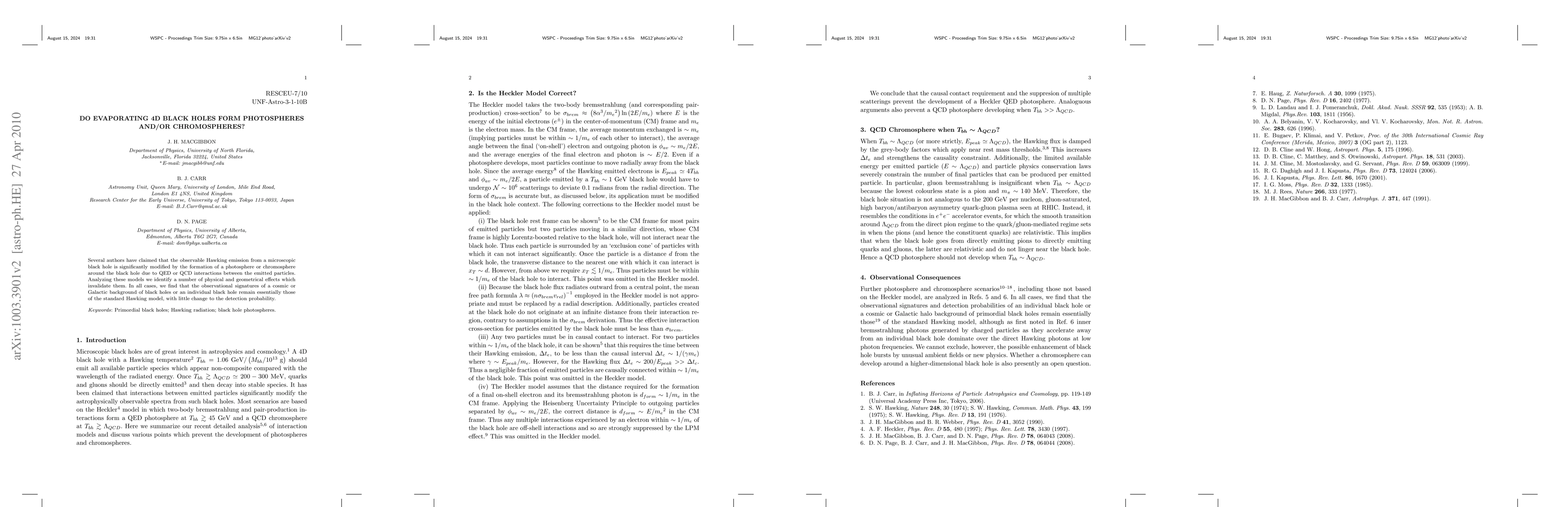 Several authors have claimed that the observable Hawking emission from a microscopic black hole is significantly modified by the formation of a photosphere or chromosphere around the black hole due to QED or QCD interactions between the emitted particles. Analyzing these models we identify a number of physical and geometrical effects which invalidate them. In all cases, we find that the observational signatures of a cosmic or Galactic background of black holes or an individual black hole remain essentially those of the standard Hawking model, with little change to the detection probability.