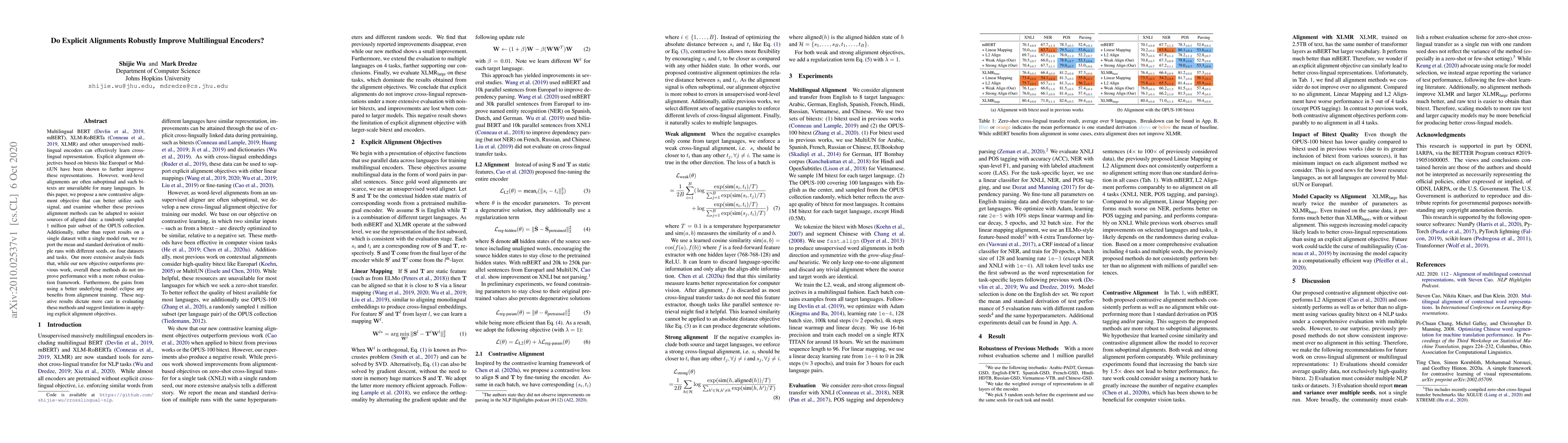 Multilingual BERT (mBERT), XLM-RoBERTa (XLMR) and other unsupervised multilingual encoders can effectively learn cross-lingual representation. Explicit alignment objectives based on bitexts like Europarl or MultiUN have been shown to further improve these representations. However, word-level alignments are often suboptimal and such bitexts are unavailable for many languages. In this paper, we propose a new contrastive alignment objective that can better utilize such signal, and examine whether these previous alignment methods can be adapted to noisier sources of aligned data: a randomly sampled 1 million pair subset of the OPUS collection. Additionally, rather than report results on a single dataset with a single model run, we report the mean and standard derivation of multiple runs with different seeds, on four datasets and tasks. Our more extensive analysis finds that, while our new objective outperforms previous work, overall these methods do not improve performance with a more robust evaluation framework. Furthermore, the gains from using a better underlying model eclipse any benefits from alignment training. These negative results dictate more care in evaluating these methods and suggest limitations in applying explicit alignment objectives.