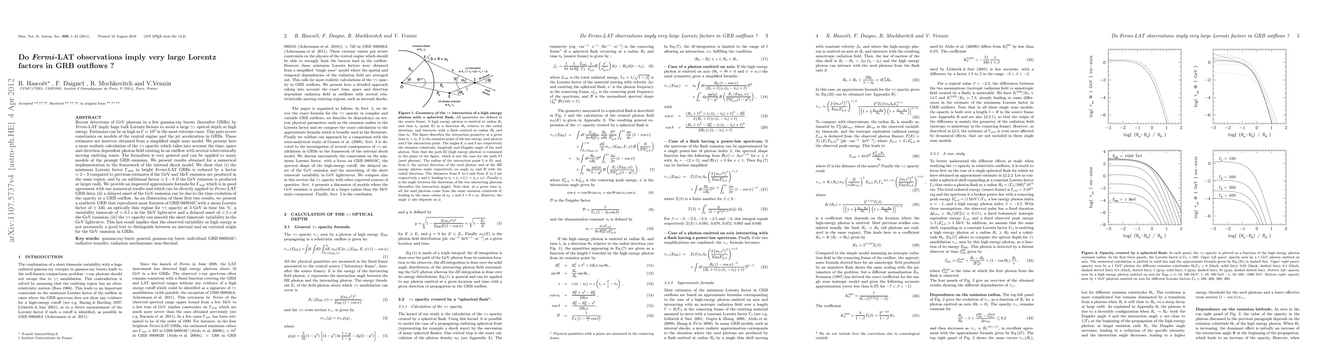 A study finds that recent Fermi-LAT observations of gamma-ray bursts (GRBs) imply very large Lorentz factors in outflows, but a new numerical model suggests these estimates may be overestimated, potentially reducing the minimum required Lorentz factor by 2-8 times.