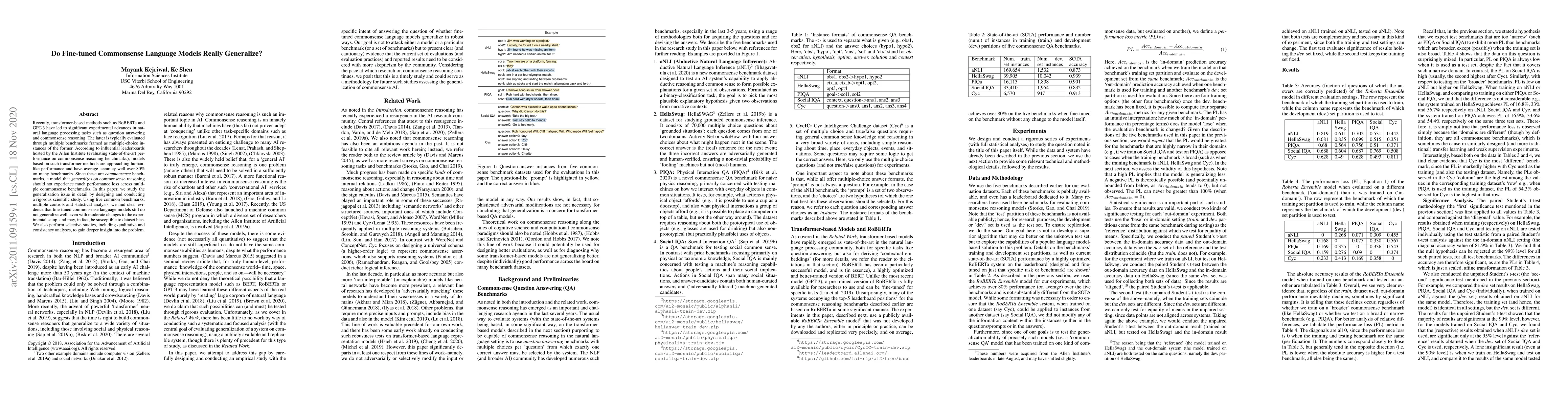 This paper investigates the generalization ability of fine-tuned commonsense language models, finding that despite high performance on commonsense benchmarks, they do not generalize well across different datasets and may be prone to dataset bias. The study uses rigorous statistical analysis and qualitative insights to reveal the limitations of current models.
