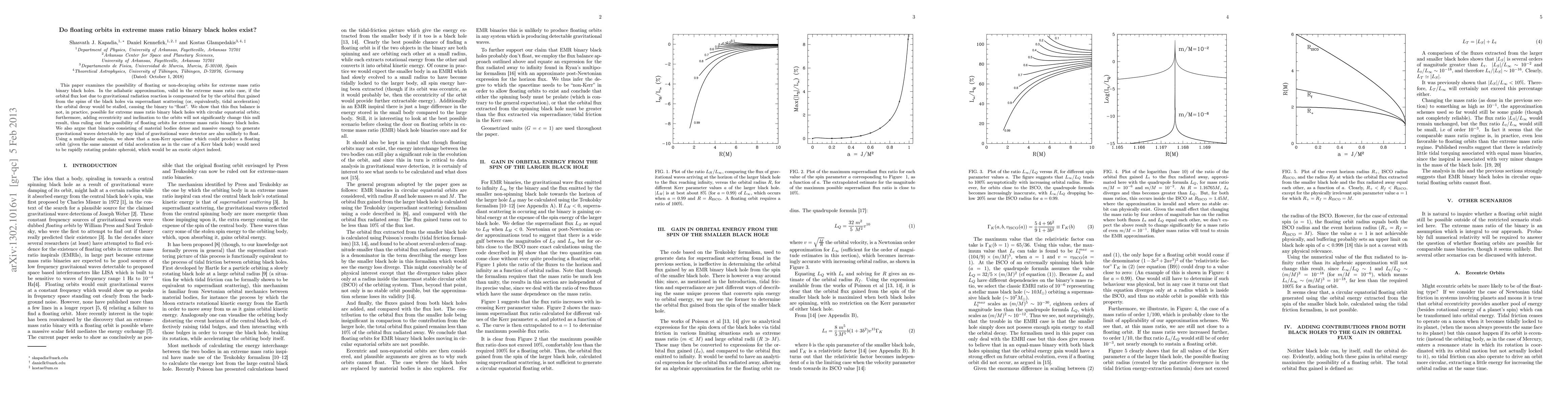 This paper concludes that floating orbits, where orbital decay is stalled due to compensating tidal forces, do not exist for extreme mass ratio binary black holes, even with orbital eccentricity and inclination. It argues that such non-decaying orbits are unlikely for material binaries and would require an exotic, rapidly rotating prolate spheroid spacetime.