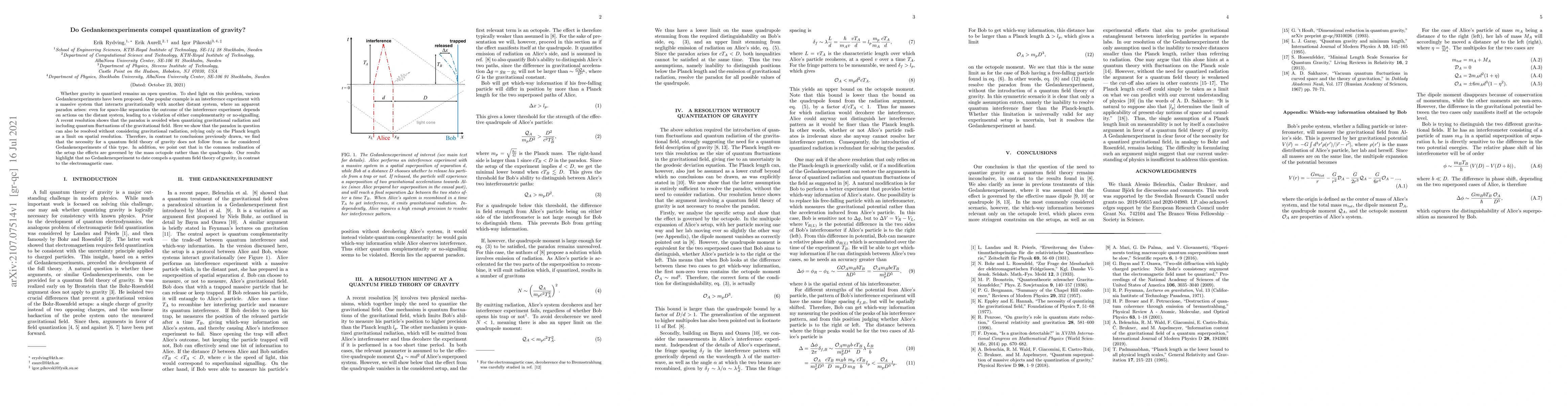A study finds that popular Gedankenexperiments do not compel a quantum field theory of gravity, contrasting with the electromagnetic case, suggesting that gravity may not be quantized.