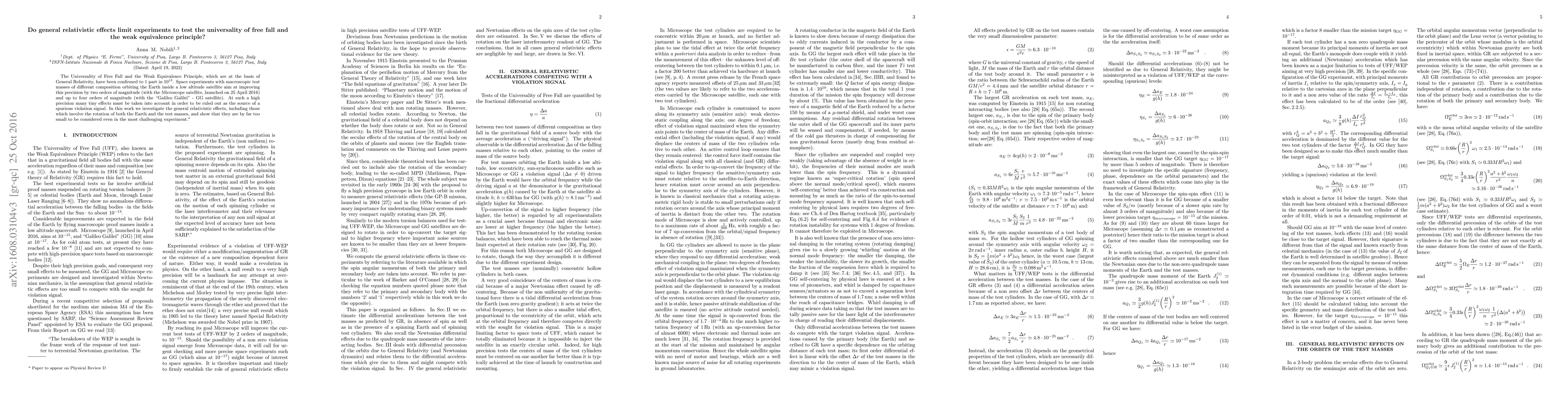 This paper investigates whether general relativistic effects could limit experiments testing the universality of free fall and the weak equivalence principle, finding that such effects are negligible even at the high precision of the Microscope and GG satellites. The study confirms that general relativity remains unchallenged at the current experimental limits.
