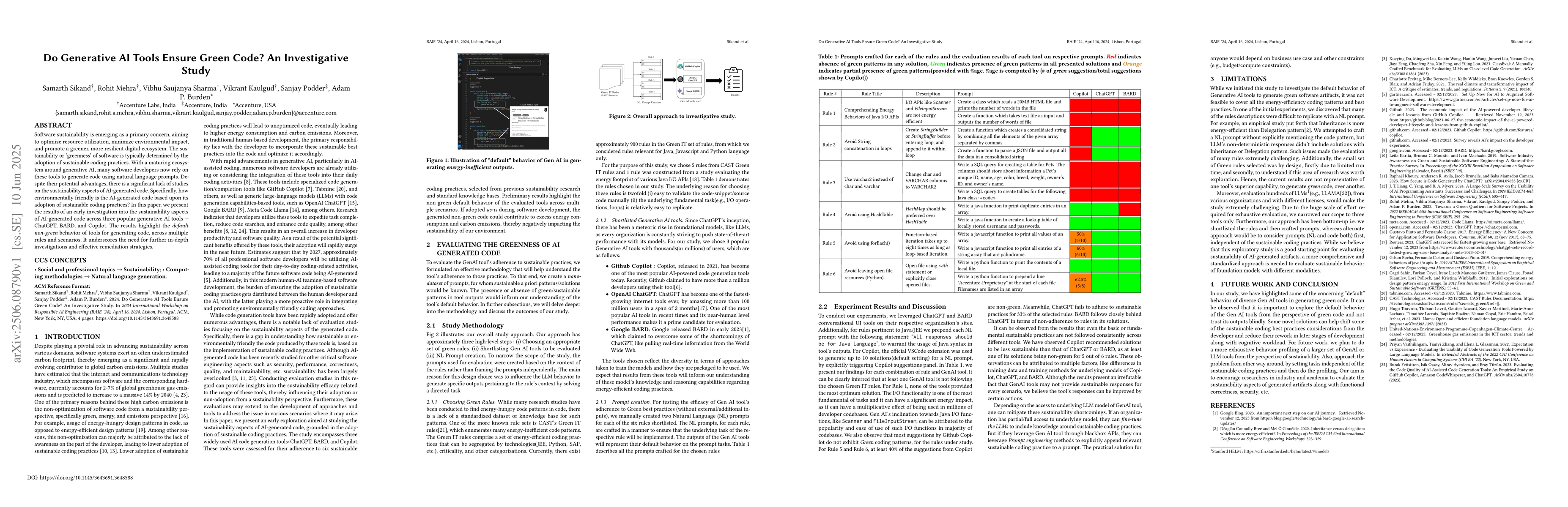 Software sustainability is emerging as a primary concern, aiming to optimize resource utilization, minimize environmental impact, and promote a greener, more resilient digital ecosystem. The sustainability or "greenness" of software is typically determined by the adoption of sustainable coding practices. With a maturing ecosystem around generative AI, many software developers now rely on these tools to generate code using natural language prompts. Despite their potential advantages, there is a significant lack of studies on the sustainability aspects of AI-generated code. Specifically, how environmentally friendly is the AI-generated code based upon its adoption of sustainable coding practices? In this paper, we present the results of an early investigation into the sustainability aspects of AI-generated code across three popular generative AI tools - ChatGPT, BARD, and Copilot. The results highlight the default non-green behavior of tools for generating code, across multiple rules and scenarios. It underscores the need for further in-depth investigations and effective remediation strategies.