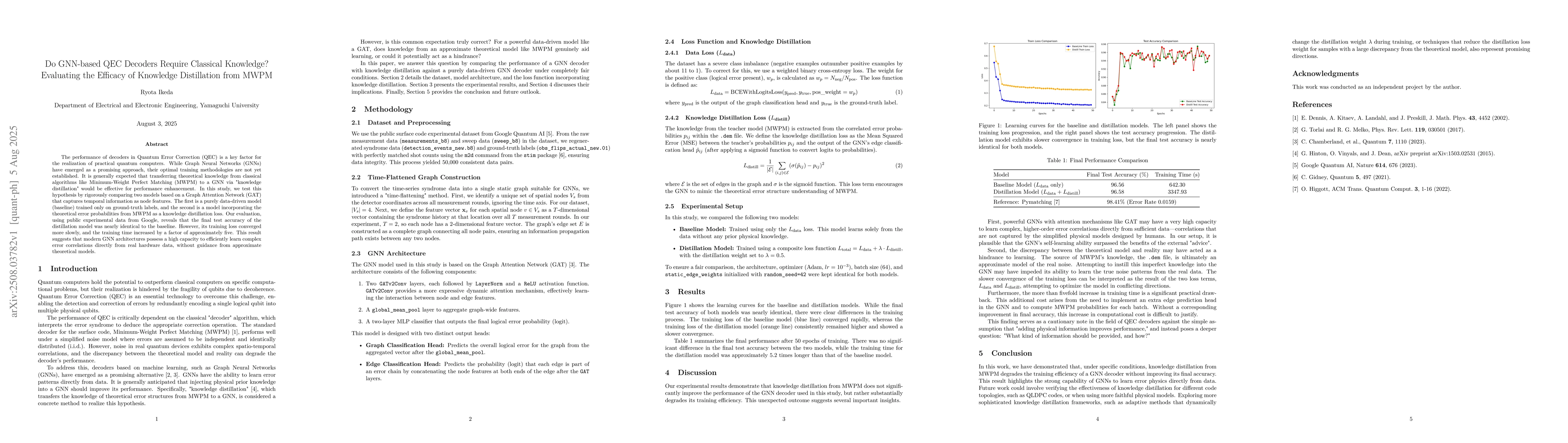 The performance of decoders in Quantum Error Correction (QEC) is key to realizing practical quantum computers. In recent years, Graph Neural Networks (GNNs) have emerged as a promising approach, but their training methodologies are not yet well-established. It is generally expected that transferring theoretical knowledge from classical algorithms like Minimum Weight Perfect Matching (MWPM) to GNNs, a technique known as knowledge distillation, can effectively improve performance. In this work, we test this hypothesis by rigorously comparing two models based on a Graph Attention Network (GAT) architecture that incorporates temporal information as node features. The first is a purely data-driven model (baseline) trained only on ground-truth labels, while the second incorporates a knowledge distillation loss based on the theoretical error probabilities from MWPM. Using public experimental data from Google, our evaluation reveals that while the final test accuracy of the knowledge distillation model was nearly identical to the baseline, its training loss converged more slowly, and the training time increased by a factor of approximately five. This result suggests that modern GNN architectures possess a high capacity to efficiently learn complex error correlations directly from real hardware data, without guidance from approximate theoretical models.