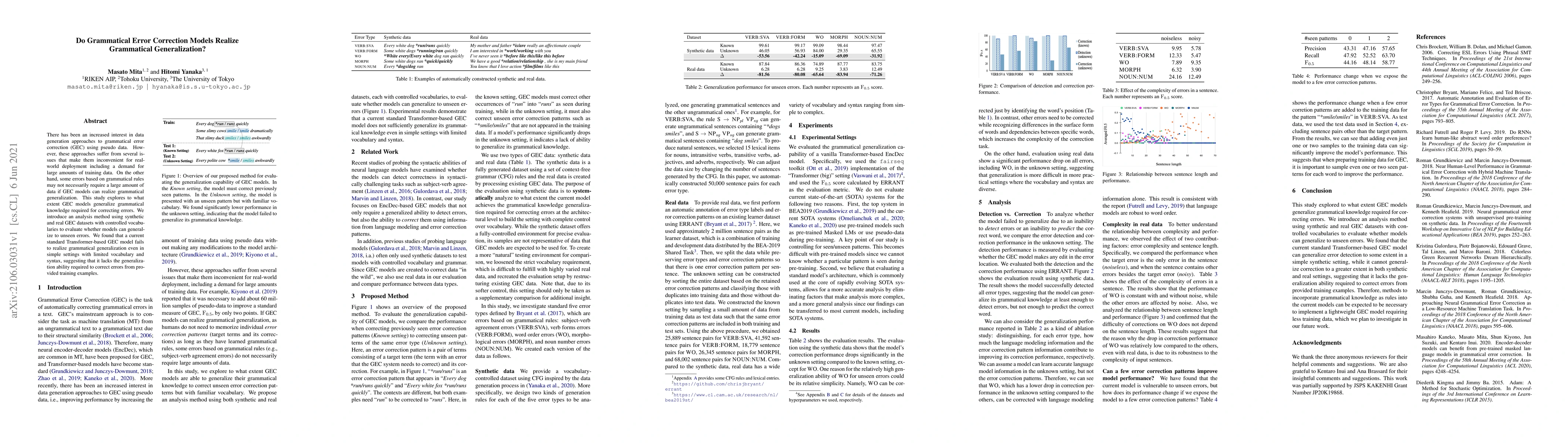 This study investigates the extent to which grammatical error correction models can generalize grammatical knowledge to unseen errors. Despite the potential for limited data scenarios, current Transformer-based models fail to demonstrate grammatical generalization, indicating a lack of necessary generalization ability.