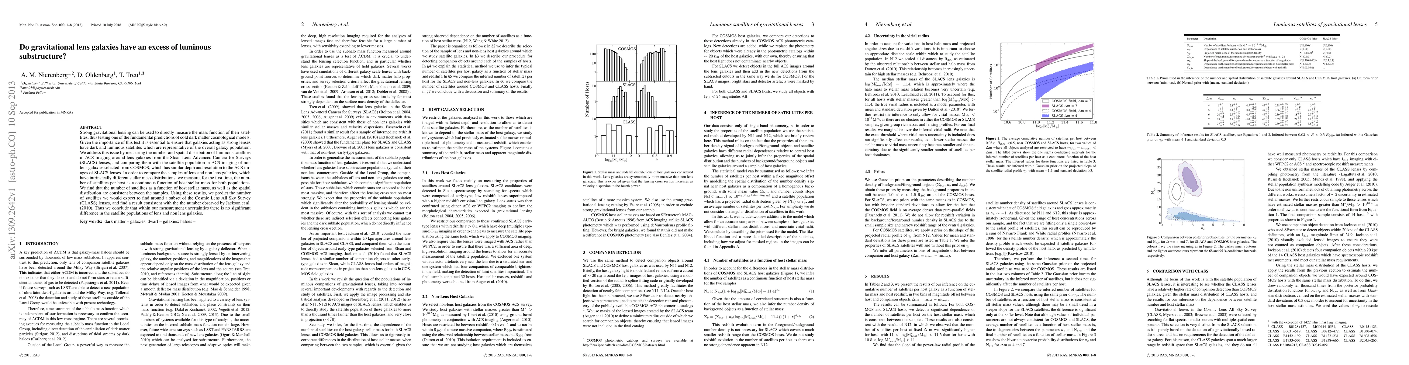 Strong gravitational lensing can be used to directly measure the mass function of their satellites, thus testing one of the fundamental predictions of cold dark matter cosmological models. Given the importance of this test it is essential to ensure that galaxies acting as strong lenses have dark and luminous satellites which are representative of the overall galaxy population. We address this issue by measuring the number and spatial distribution of luminous satellites in ACS imaging around lens galaxies from the Sloan Lens Advanced Camera for Surveys (SLACS) lenses, and comparing them with the satellite population in ACS imaging of non lens galaxies selected from COSMOS, which has similar depth and resolution to the ACS images of SLACS lenses. In order to compare the samples of lens and non lens galaxies, which have intrinsically different stellar mass distributions, we measure, for the first time, the number of satellites per host as a continuous function of host stellar mass for both populations. We find that the number of satellites as a function of host stellar mass, as well as the spatial distribution are consistent between the samples. Using these results, we predict the number of satellites we would expect to find around a subset of the Cosmic Lens All Sky Survey (CLASS) lenses, and find a result consistent with the the number observed by Jackson et al. 2010. Thus we conclude that within our measurement uncertainties there is no significant difference in the satellite populations of lens and non lens galaxies.