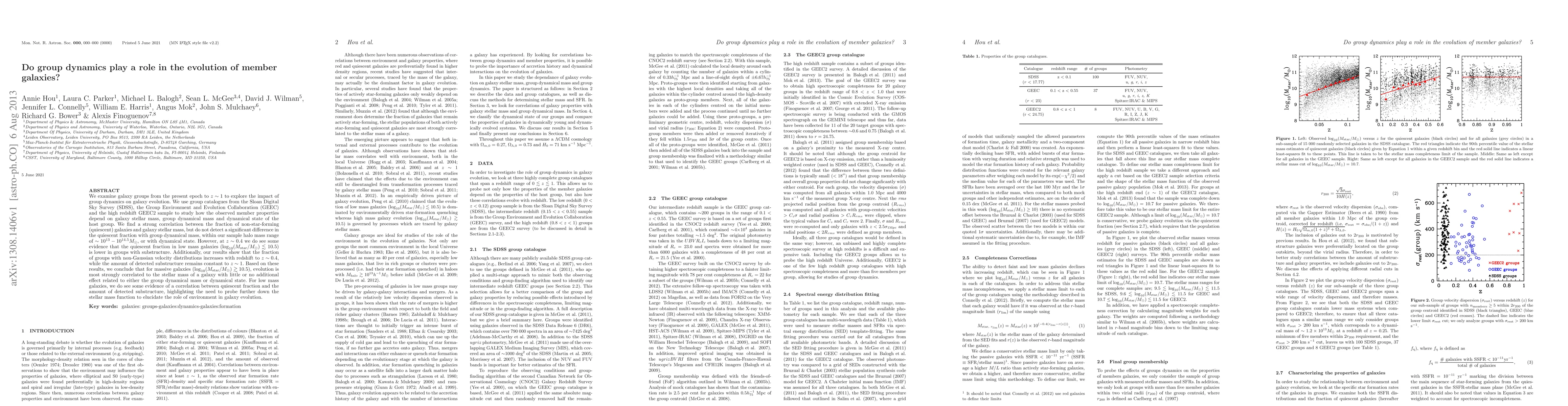 We examine galaxy groups from the present epoch to z = 1 to explore the impact of group dynamics on galaxy evolution. We use group catalagues from the Sloan Digital Sky Survey (SDSS), the Group Environment and Evolution Collaboration (GEEC) and the high redshift GEEC2 sample to study how the observed member properties depend on galaxy stellar mass, group dynamical mass and dynamical state of the host group. We find a strong correlation between the fraction of non-star-forming (quiescent) galaxies and galaxy stellar mass, but do not detect a significant difference in the quiescent fraction with group dynamical mass, within our sample halo mass range of 10^13-10^14.5 M_sun, or with dynamical sate. However, at a redshift of approximately 0.4 we do see some evidence that the quiescent fraction in low mass galaxies (log(M_star/M_sun) < 10.5) is lower in groups with substructure. Additionally, our results show that the fraction of groups with non-Gaussian velocity distributions increases with redshift to roughly z = 0.4, while the amount of detected substructure remains constant to z = 1. Based on these results, we conclude that for massive galaxies (log(M_star/M_sun_ > 10.5), evolution is most strongly correlated to the stellar mass of a galaxy with little or no additional effect related to either the group dynamical mass or dynamical state. For low mass galaxies, we do see some evidence of a correlation between the quiescent fraction and the amount of detected substructure, highlighting the need to probe further down the stellar mass function to elucidate the role of the environment in galaxy evolution.