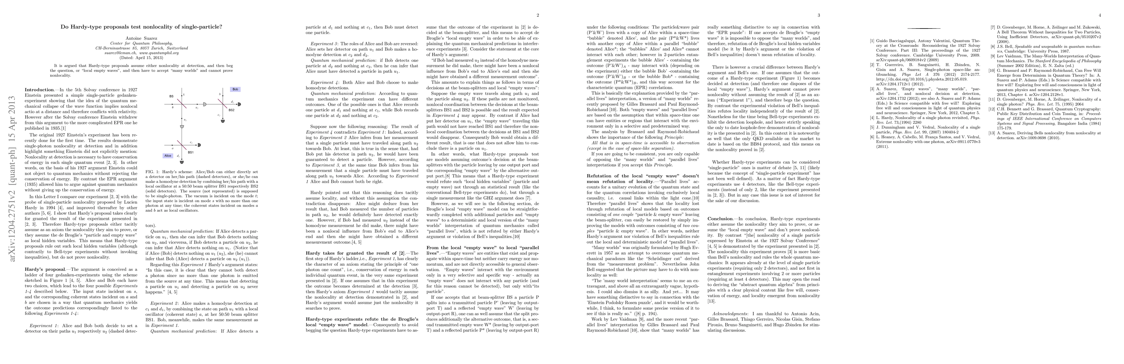 Summary: Hardy-type proposals for testing nonlocality either assume nonlocality at detection or rely on "local empty waves," leading to acceptance of "many worlds," thus failing to prove nonlocality conclusively. The argument suggests these proposals do not effectively test for nonlocality.