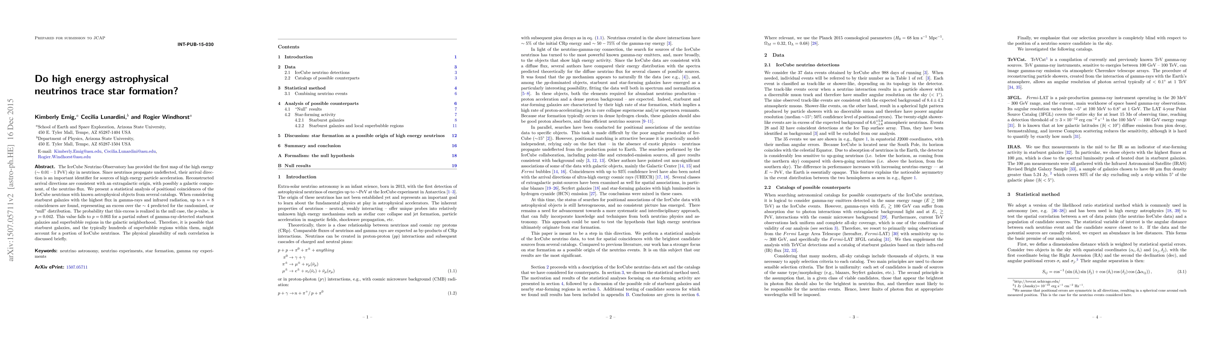 The IceCube Neutrino Observatory has provided the first map of the high energy (~ 0.01 -- 1 PeV) sky in neutrinos. Since neutrinos propagate undeflected, their arrival direction is an important identifier for sources of high energy particle acceleration. Reconstructed arrival directions are consistent with an extragalactic origin, with possibly a galactic component, of the neutrino flux. We present a statistical analysis of positional coincidences of the IceCube neutrinos with known astrophysical objects from several catalogs. When considering starburst galaxies with the highest flux in gamma-rays and infrared radiation, up to n=8 coincidences are found, representing an excess over the ~4 predicted for the randomized, or "null" distribution. The probability that this excess is realized in the null case, the p-value, is p=0.042. This value falls to p=0.003 for a partial subset of gamma-ray-detected starburst galaxies and superbubble regions in the galactic neighborhood. Therefore, it is possible that starburst galaxies, and the typically hundreds of superbubble regions within them, might account for a portion of IceCube neutrinos. The physical plausibility of such correlation is discussed briefly.