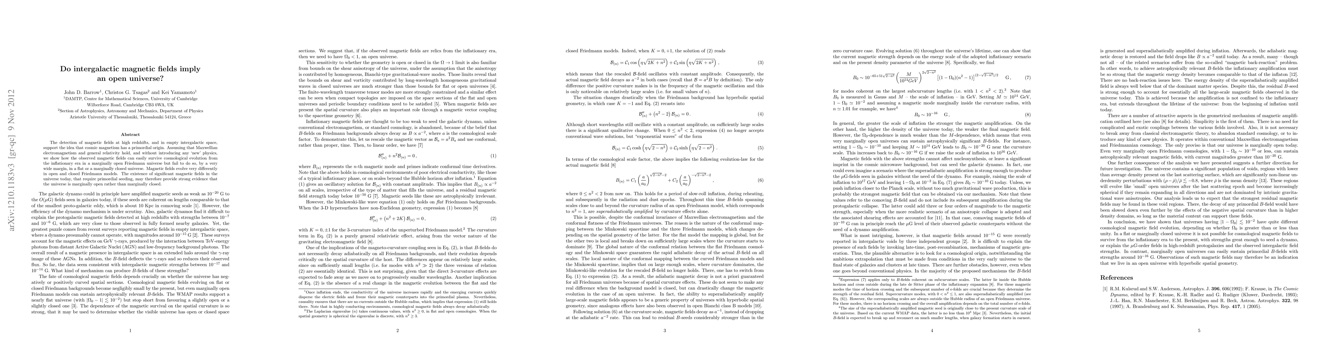 The paper argues that the presence of intergalactic magnetic fields at high redshifts suggests a primordial origin and supports the idea of a marginally open universe. It demonstrates that these magnetic fields can persist in an open universe model but fail to do so in flat or closed universe models, implying that the existence of such fields may indicate an open universe.