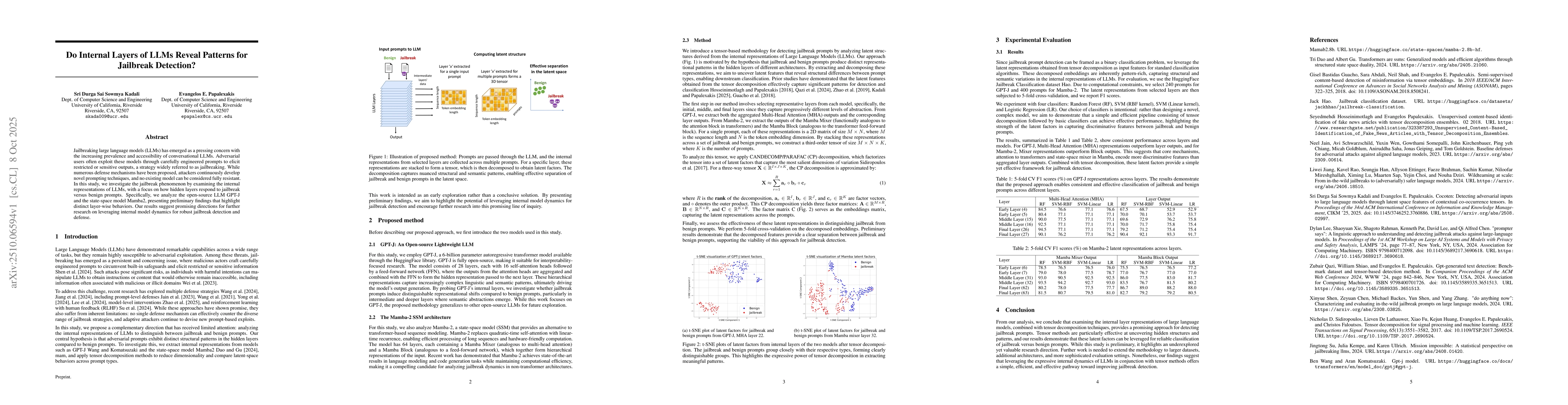 Introduces a tensor decomposition-based method for analyzing latent structures in LLMs, enabling the extraction of discriminative features for jailbreak detection through hierarchical representation analysis.