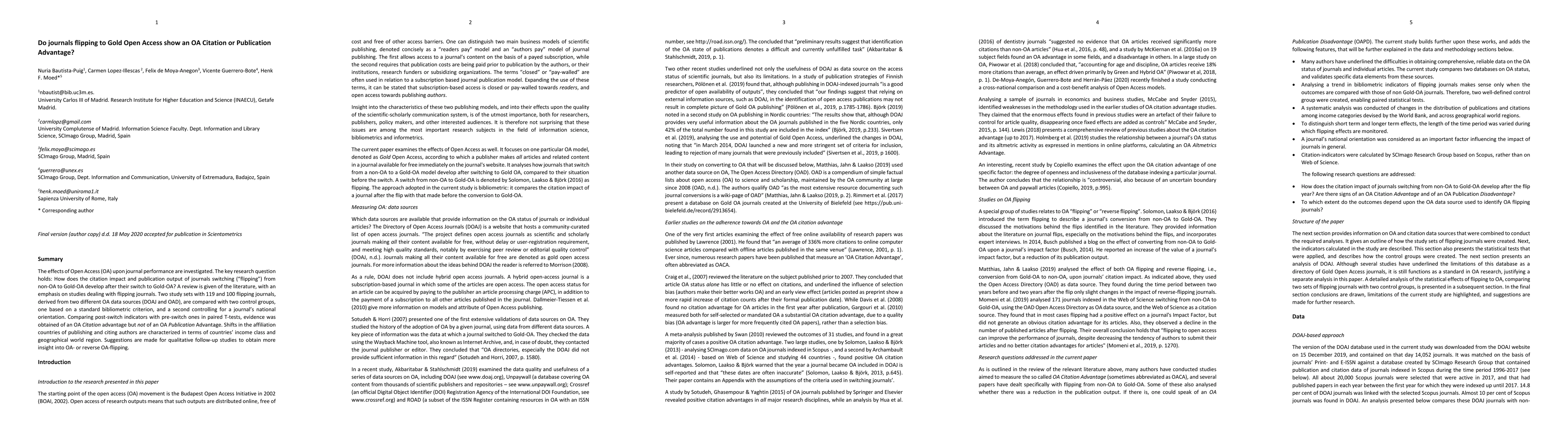 This study investigates the citation impact and publication output of journals transitioning to Gold Open Access (OA) versus non-OA. Results show an OA Citation Advantage but no OA Publication Advantage, suggesting that while citations increase post-transition, publication output remains unchanged.