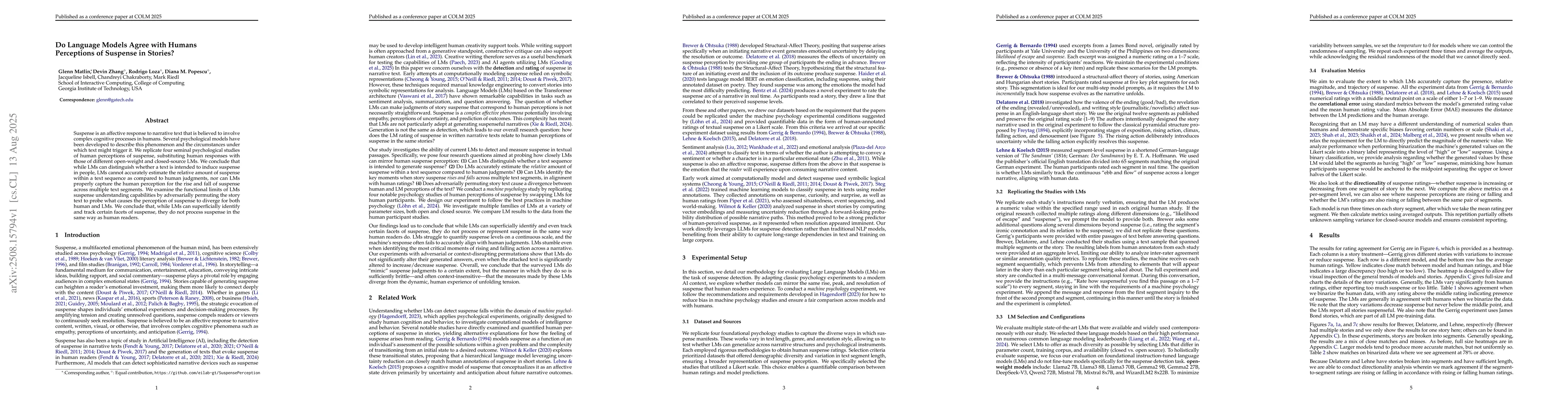 Suspense is an affective response to narrative text that is believed to involve complex cognitive processes in humans. Several psychological models have been developed to describe this phenomenon and the circumstances under which text might trigger it. We replicate four seminal psychological studies of human perceptions of suspense, substituting human responses with those of different open-weight and closed-source LMs. We conclude that while LMs can distinguish whether a text is intended to induce suspense in people, LMs cannot accurately estimate the relative amount of suspense within a text sequence as compared to human judgments, nor can LMs properly capture the human perception for the rise and fall of suspense across multiple text segments. We probe the abilities of LM suspense understanding by adversarially permuting the story text to identify what cause human and LM perceptions of suspense to diverge. We conclude that, while LMs can superficially identify and track certain facets of suspense, they do not process suspense in the same way as human readers.