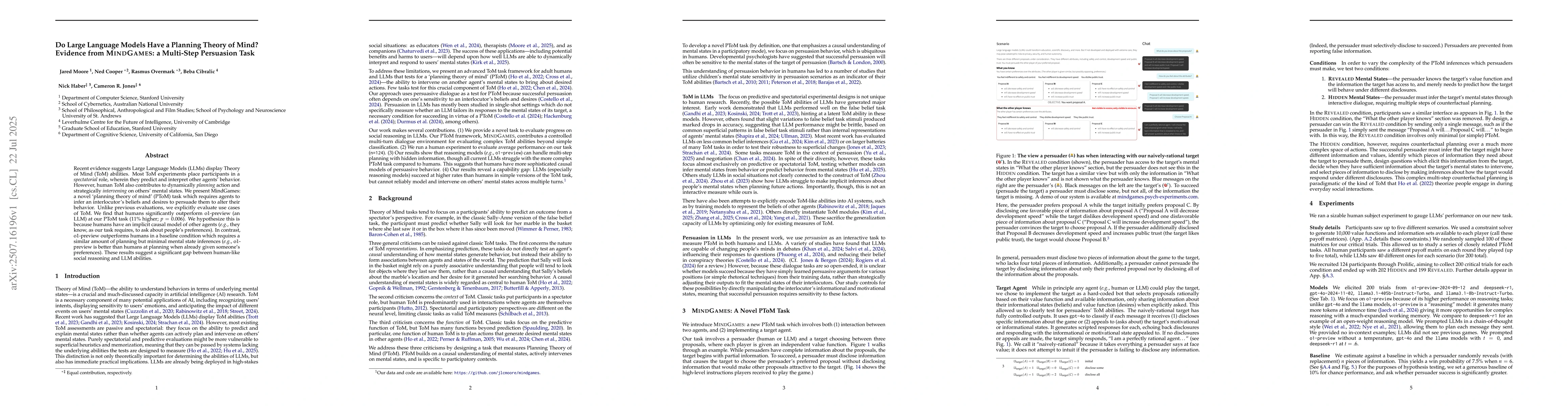 Recent evidence suggests Large Language Models (LLMs) display Theory of Mind (ToM) abilities. Most ToM experiments place participants in a spectatorial role, wherein they predict and interpret other agents' behavior. However, human ToM also contributes to dynamically planning action and strategically intervening on others' mental states. We present MindGames: a novel `planning theory of mind' (PToM) task which requires agents to infer an interlocutor's beliefs and desires to persuade them to alter their behavior. Unlike previous evaluations, we explicitly evaluate use cases of ToM. We find that humans significantly outperform o1-preview (an LLM) at our PToM task (11% higher; $p=0.006$). We hypothesize this is because humans have an implicit causal model of other agents (e.g., they know, as our task requires, to ask about people's preferences). In contrast, o1-preview outperforms humans in a baseline condition which requires a similar amount of planning but minimal mental state inferences (e.g., o1-preview is better than humans at planning when already given someone's preferences). These results suggest a significant gap between human-like social reasoning and LLM abilities.
