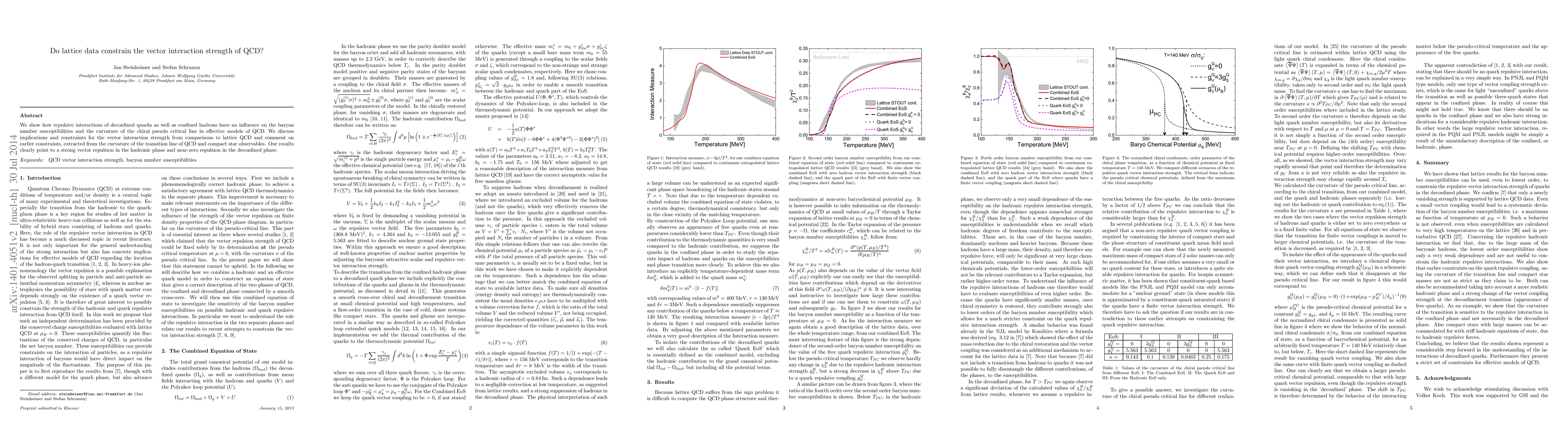 This study investigates how lattice data affects our understanding of vector interactions in Quantum Chromodynamics (QCD), finding strong repulsion in hadronic phase and near-zero repulsion in deconfined phase.