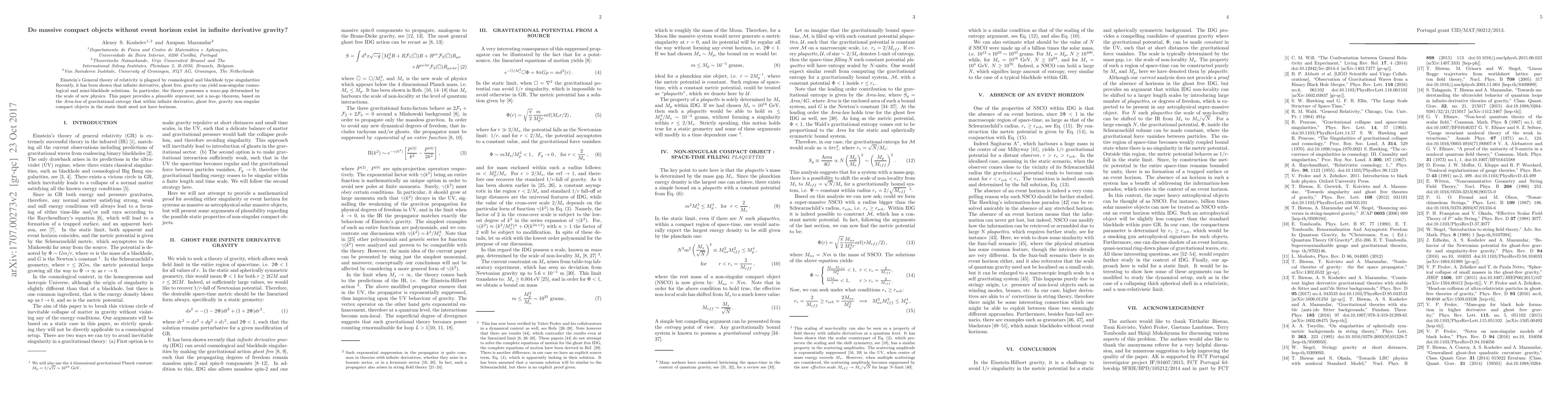 Einstein's General theory of relativity is plagued by cosmological and blackhole type singularities Recently, it has been shown that infinite derivative, ghost free, gravity can yield non-singular cosmological and mini-blackhole solutions. In particular, the theory possesses a {\it mass-gap} determined by the scale of new physics. We will use this property to argue that it is possible to form a non-singular super-massive compact objects without having any event horizon in this class of theories.