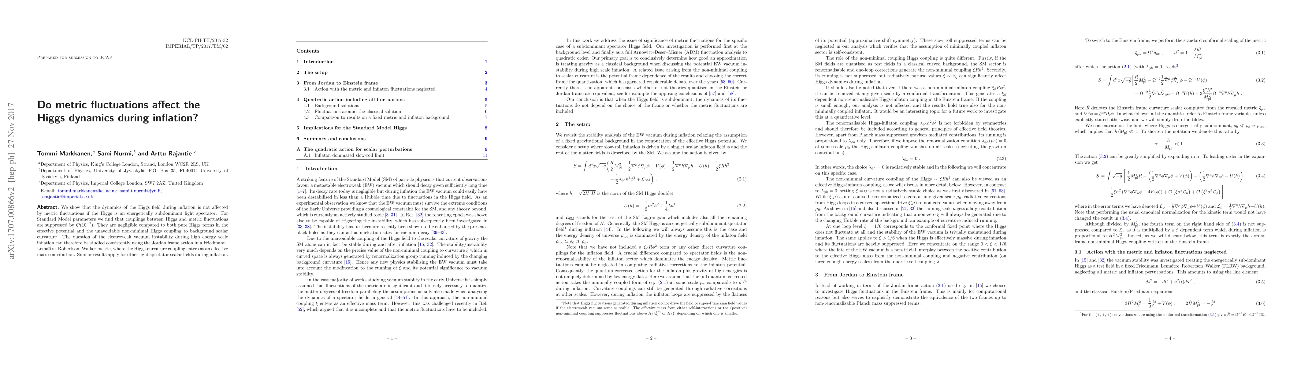 This paper demonstrates that metric fluctuations have negligible effects on the Higgs field dynamics during inflation when the Higgs is a light, energetically subdominant spectator. The coupling between the Higgs and metric fluctuations is suppressed and thus does not impact the effective potential or the non-minimal Higgs-curvature coupling.