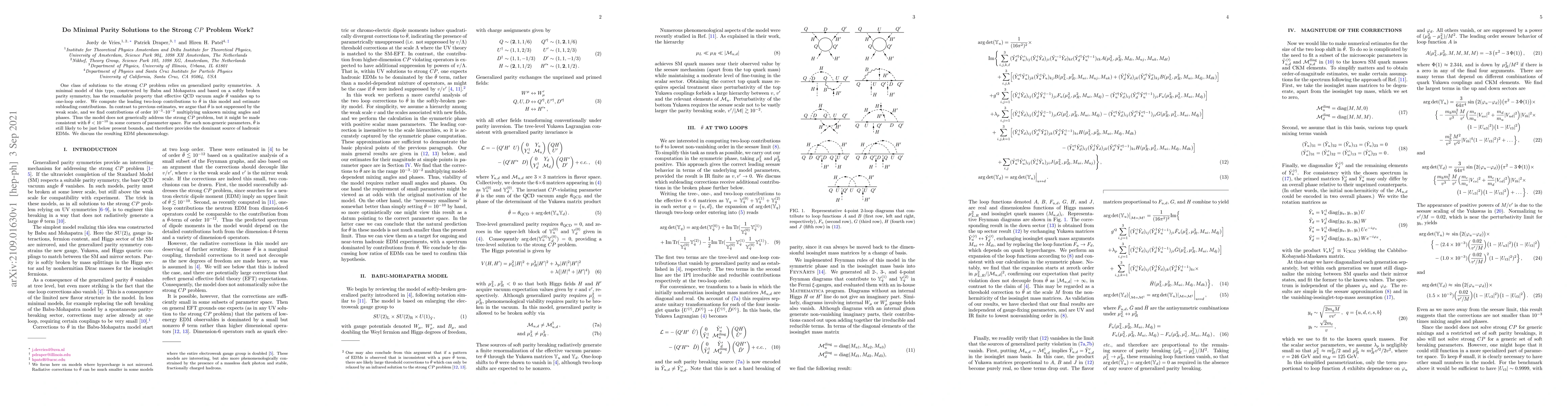 Researchers investigate a model addressing the strong CP problem through minimal parity solutions, finding contributions of order 10^-3 to 10^-2 to the QCD vacuum angle, potentially affecting hadronic electric dipole moments.