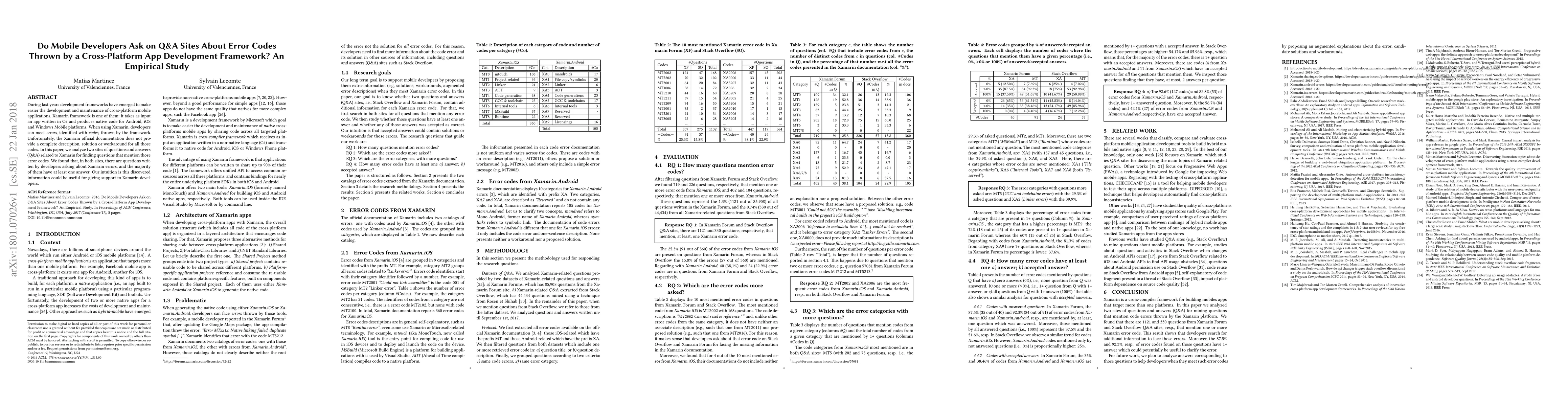 This study investigates whether mobile developers using the Xamarin framework turn to Q&A sites for help with error codes. The research found that many developers ask questions about these errors on Q&A sites, and most receive answers, suggesting potential value in compiling this information for better support.