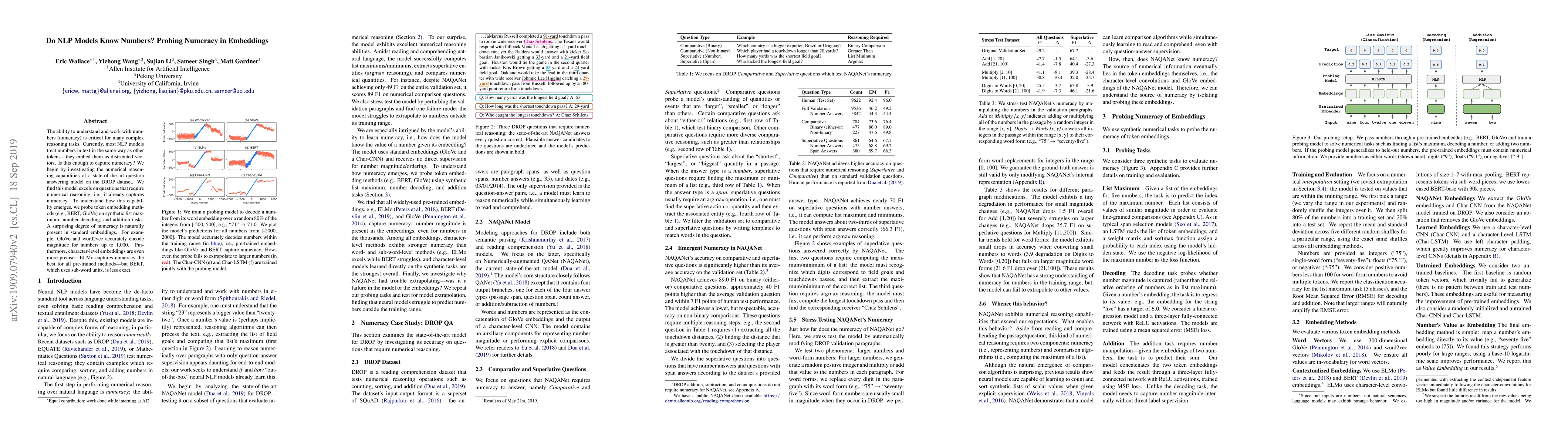 This paper investigates whether NLP models inherently understand numbers by probing embeddings in various NLP models. It finds that state-of-the-art models exhibit numeracy in numerical reasoning tasks, and surprisingly, standard embeddings like GloVe and word2vec show a high degree of numeracy, especially character-level embeddings such as ELMo.