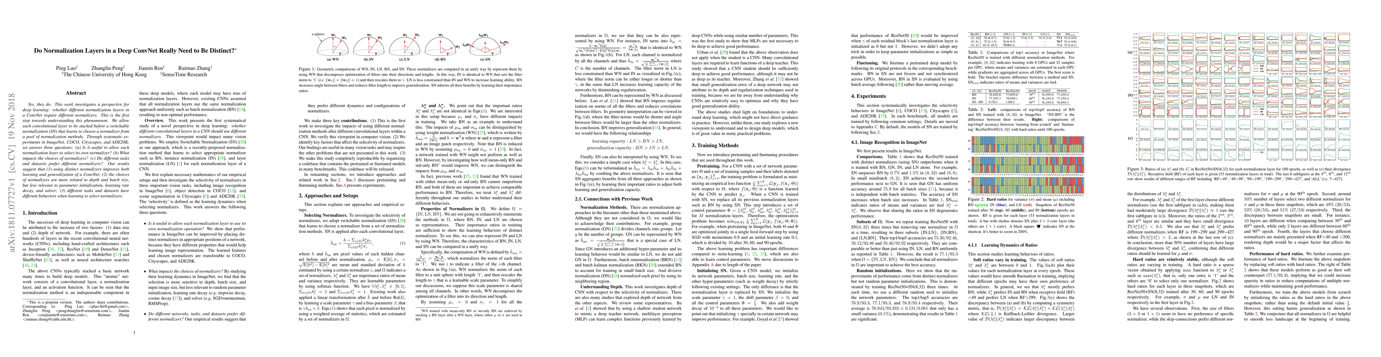 Yes, they do. This work investigates a perspective for deep learning: whether different normalization layers in a ConvNet require different normalizers. This is the first step towards understanding this phenomenon. We allow each convolutional layer to be stacked before a switchable normalization (SN) that learns to choose a normalizer from a pool of normalization methods. Through systematic experiments in ImageNet, COCO, Cityscapes, and ADE20K, we answer three questions: (a) Is it useful to allow each normalization layer to select its own normalizer? (b) What impacts the choices of normalizers? (c) Do different tasks and datasets prefer different normalizers? Our results suggest that (1) using distinct normalizers improves both learning and generalization of a ConvNet; (2) the choices of normalizers are more related to depth and batch size, but less relevant to parameter initialization, learning rate decay, and solver; (3) different tasks and datasets have different behaviors when learning to select normalizers.
