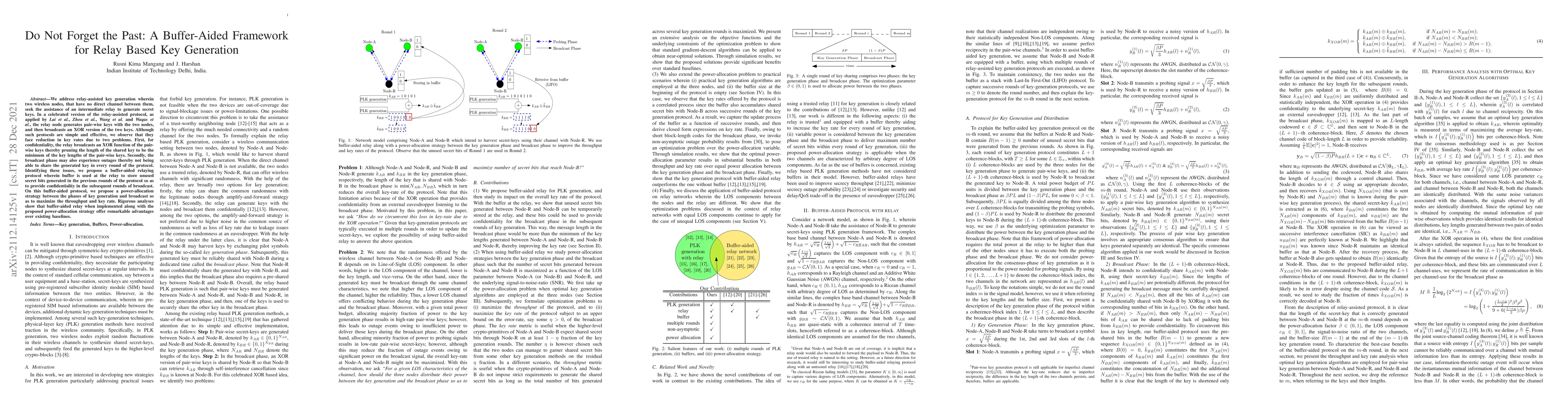 This paper proposes a buffer-aided relaying protocol to enhance relay-assisted key generation between two wireless nodes without a direct channel. It addresses key rate reduction issues by using a relay buffer to store unused secret bits and introduces a power-allocation strategy to maximize throughput and key rate, demonstrating significant improvements over existing protocols.