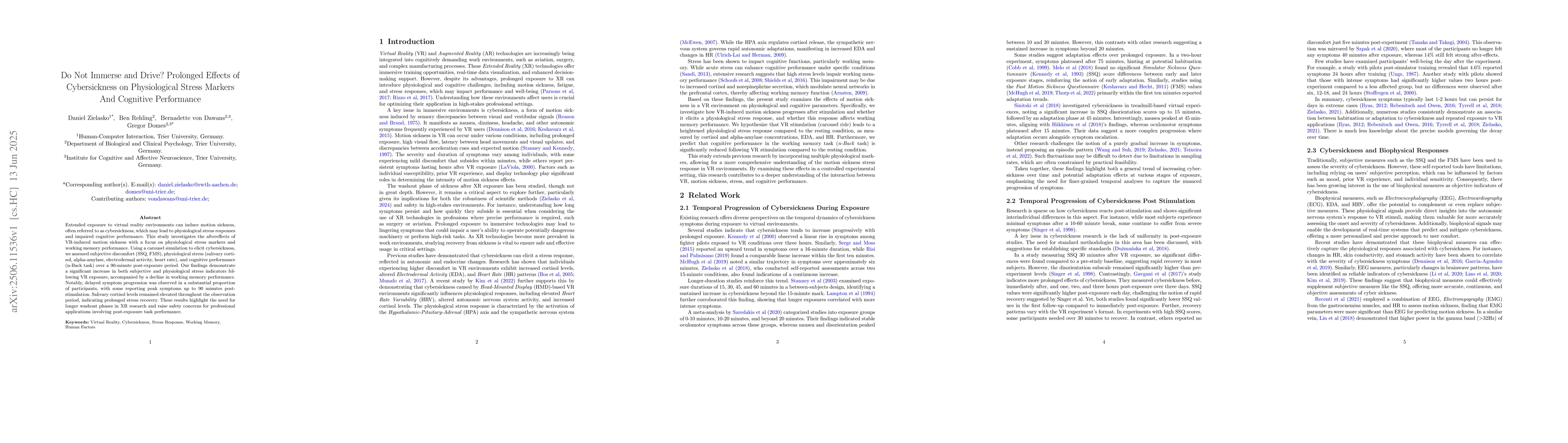 This study reveals that extended virtual reality use can cause cybersickness, leading to heightened physiological stress and impaired cognitive abilities, such as working memory, for up to 90 minutes post-exposure. The research emphasizes the necessity for extended recovery periods in VR research and applications requiring subsequent tasks.