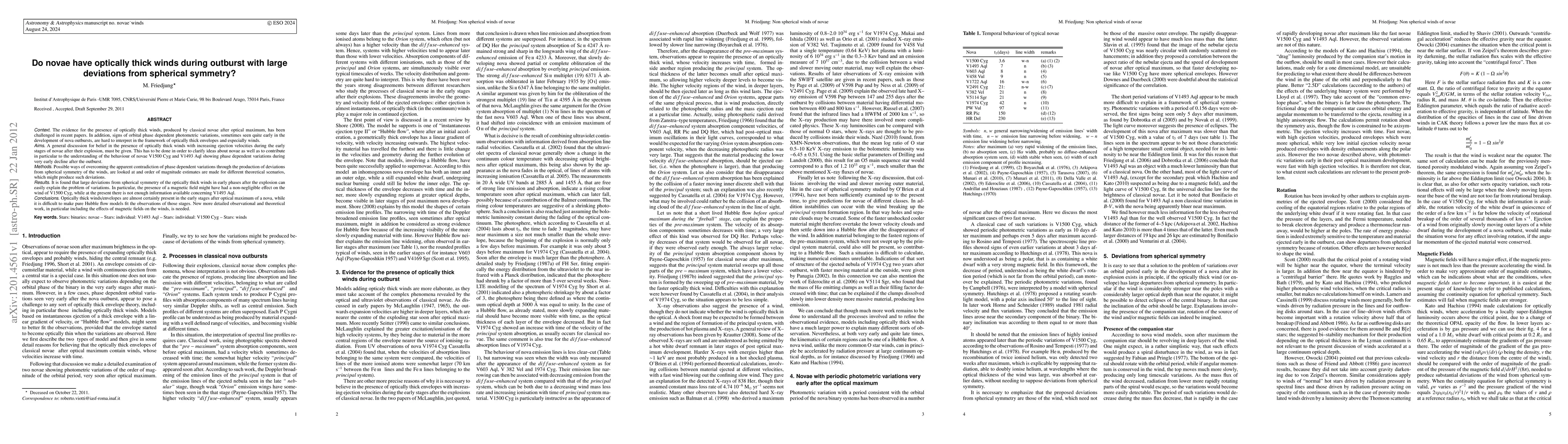 Research suggests that novae indeed have optically thick winds with large deviations from spherical symmetry during outburst, clarifying the behavior of specific novae like V1500 Cyg and V1493 Aql.