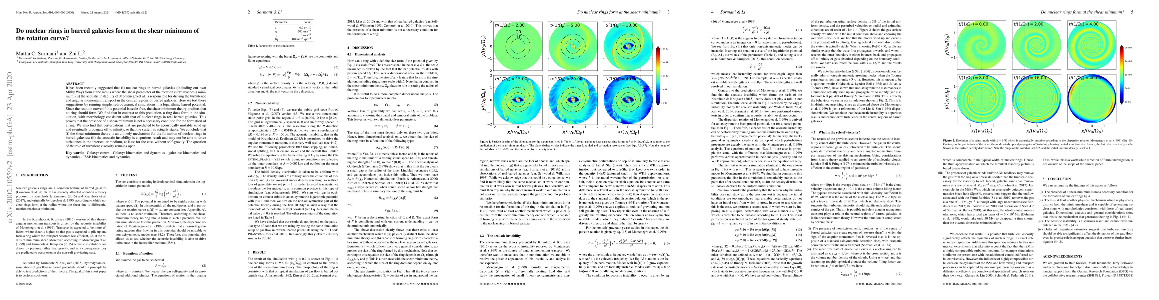 This paper tests the hypothesis that nuclear rings in barred galaxies form at the shear minimum of the rotation curve, finding that rings can form even when this condition is not met. It concludes that the shear-minimum theory is unlikely to explain ring formation and that the proposed acoustic instability is not a viable mechanism for driving turbulence in these systems.