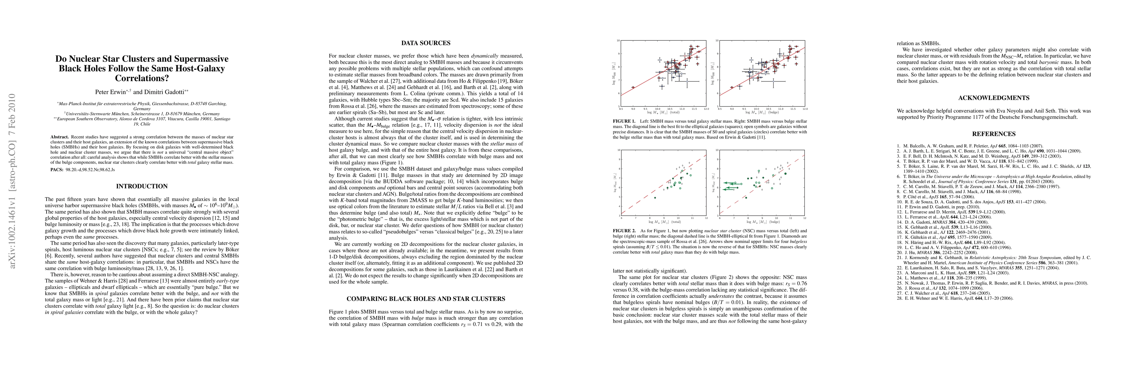 Summary: This study finds that nuclear star clusters correlate more strongly with the total stellar mass of their host galaxies, while supermassive black holes correlate better with the stellar mass of the bulge, indicating different host-galaxy relationships for these central massive objects.