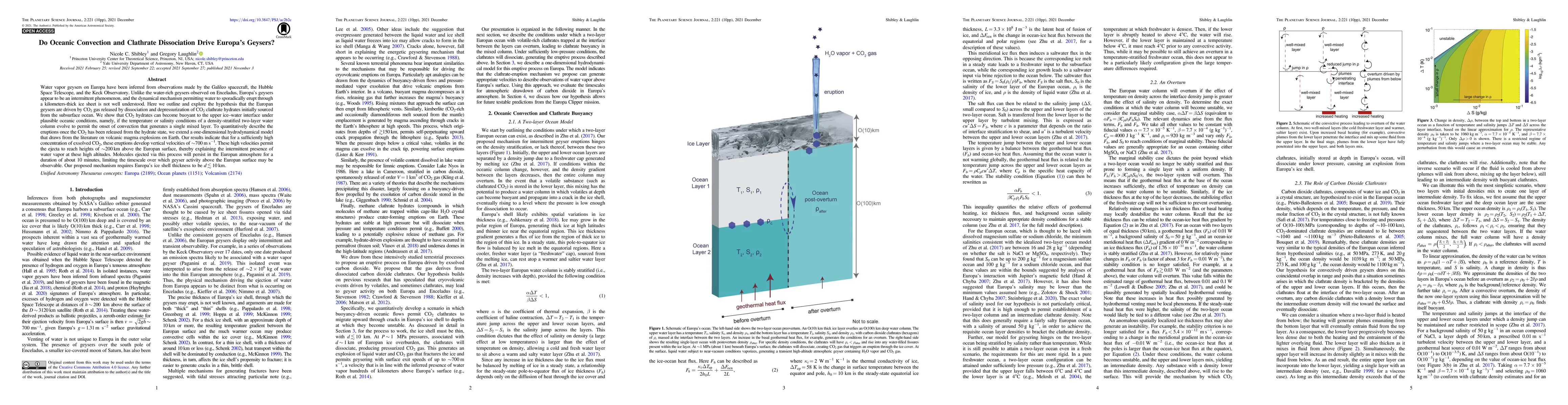 This paper hypothesizes that Europa's geysers are driven by CO$_2$ gas released from clathrate dissociation in the subsurface ocean, facilitated by oceanic convection. The model suggests that these eruptions can reach velocities of ~700 m/s, explaining the sporadic water vapor geysers observed.