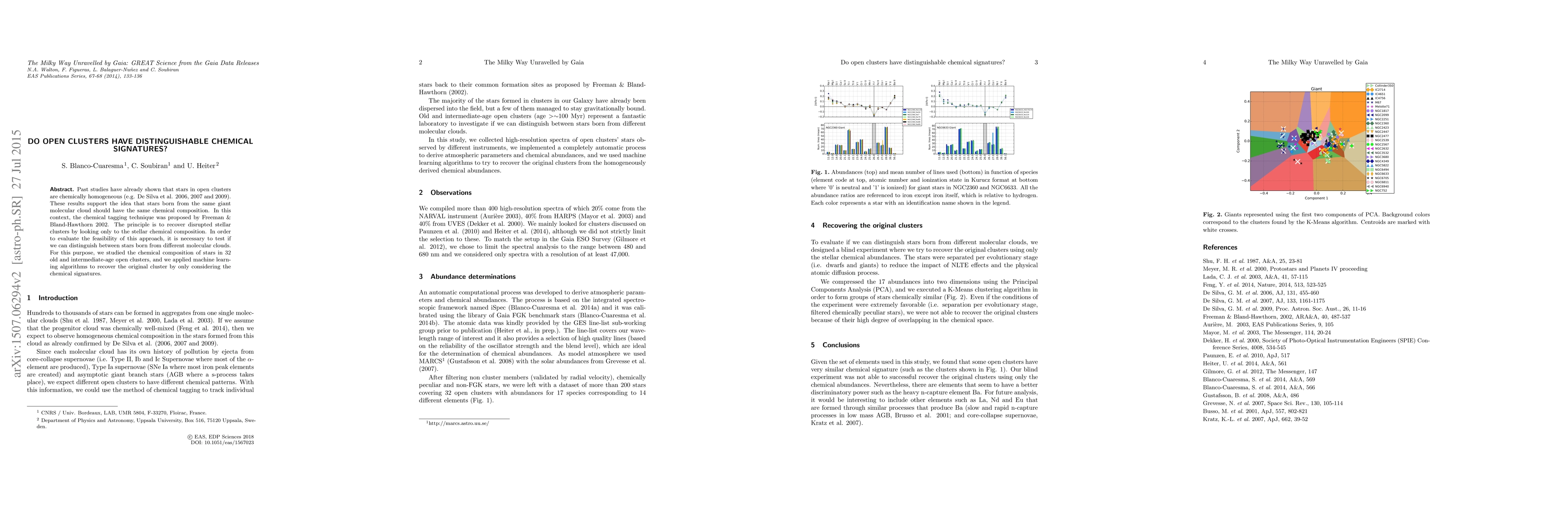 This study investigates whether open clusters exhibit distinguishable chemical signatures by analyzing the composition of stars in 32 clusters. It aims to determine if machine learning can recover original clusters based solely on chemical data, supporting the chemical tagging technique.