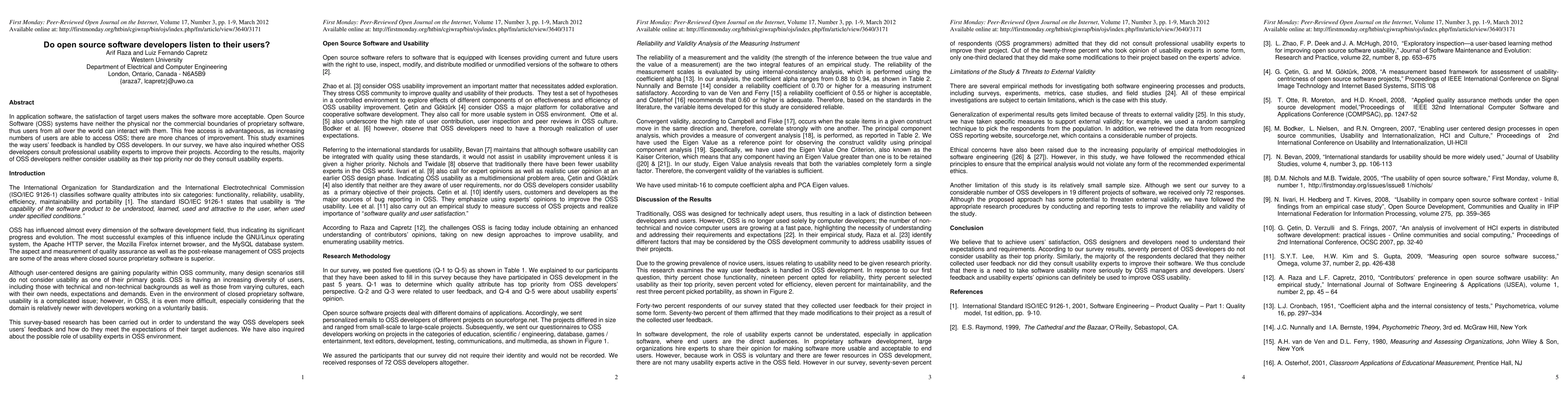 This study investigates how Open Source Software (OSS) developers respond to user feedback and whether they involve professional usability experts. The findings indicate that most OSS developers do not prioritize usability or consult usability experts, suggesting a gap in user-focused development practices.