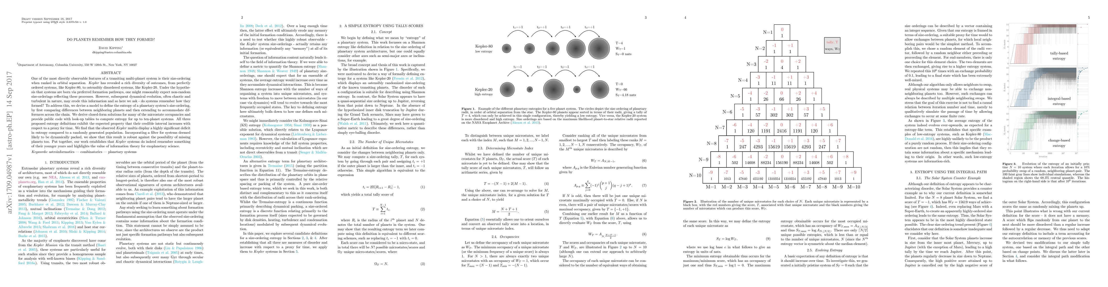 One of the most directly observable features of a transiting multi-planet system is their size-ordering when ranked in orbital separation. Kepler has revealed a rich diversity of outcomes, from perfectly ordered systems, like Kepler-80, to ostensibly disordered systems, like Kepler-20. Under the hypothesis that systems are born via preferred formation pathways, one might reasonably expect non-random size-orderings reflecting these processes. However, subsequent dynamical evolution, often chaotic and turbulent in nature, may erode this information and so here we ask - do systems remember how they formed? To address this, we devise a model to define the entropy of a planetary system's size-ordering, by first comparing differences between neighboring planets and then extending to accommodate differences across the chain. We derive closed-form solutions for many of the micro state occupancies and provide public code with look-up tables to compute entropy for up to ten-planet systems. All three proposed entropy definitions exhibit the expected property that their credible interval increases with respect to a proxy for time. We find that the observed Kepler multis display a highly significant deficit in entropy compared to a randomly generated population. Incorporating a filter for systems deemed likely to be dynamically packed, we show that this result is robust against the possibility of missing planets too. Put together, our work establishes that Kepler systems do indeed remember something of their younger years and highlights the value of information theory for exoplanetary science.