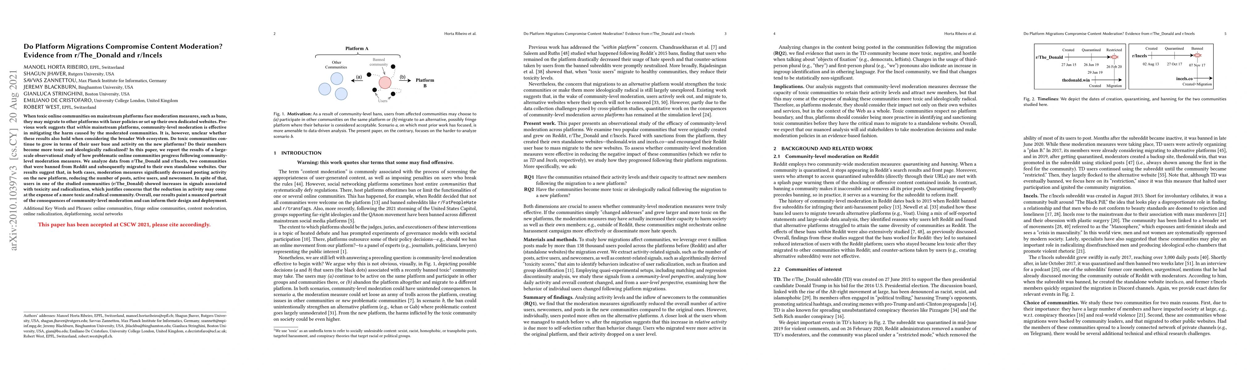 This paper investigates the impact of community-level moderation on toxic online communities that migrate to alternative platforms after being banned from mainstream sites. It finds that while moderation reduces activity, one community (r/The_Donald) showed increased toxicity and radicalization, highlighting the complex effects of such measures across different platforms.