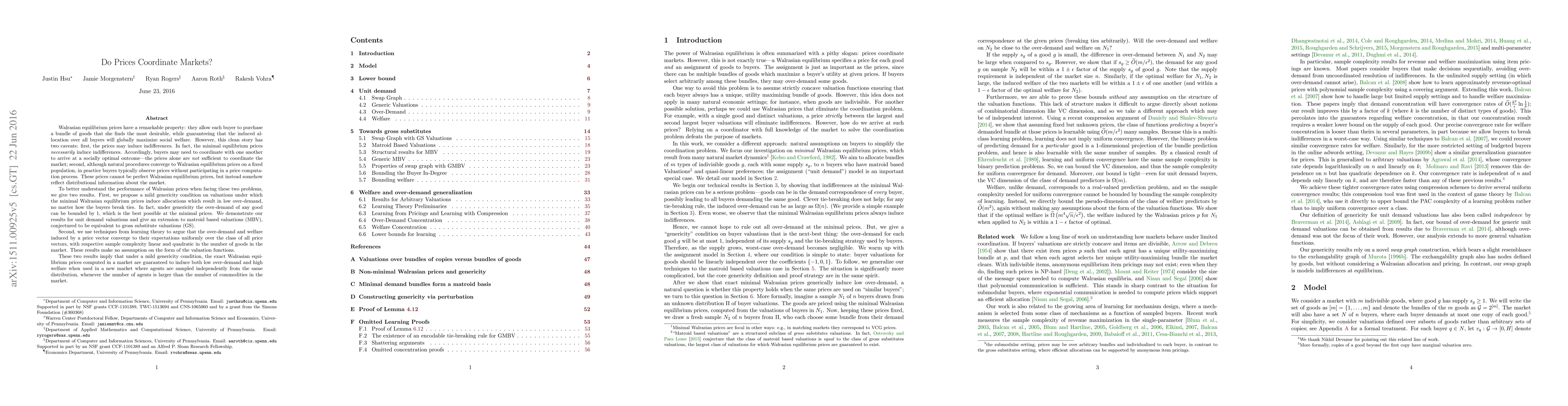 This paper investigates whether prices alone can coordinate markets, focusing on when tie-breaking is uncoordinated and distributional information is encoded, finding that prices work well to coordinate markets even in such scenarios.