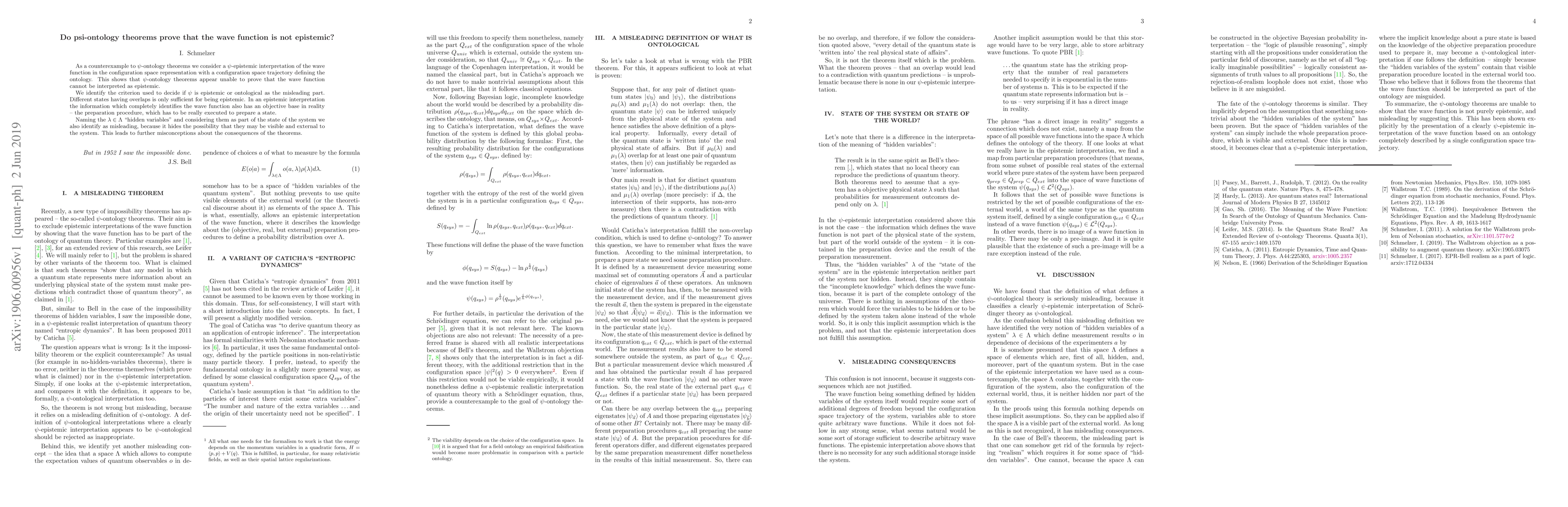 The paper argues that $\psi$-ontology theorems cannot conclusively prove the wave function is not epistemic, as they misinterpret the criteria for epistemic versus ontological interpretations. It highlights that overlaps among different states are not sufficient to deem the wave function epistemic, and the notion of "hidden variables" obscures the potential visibility of these factors.