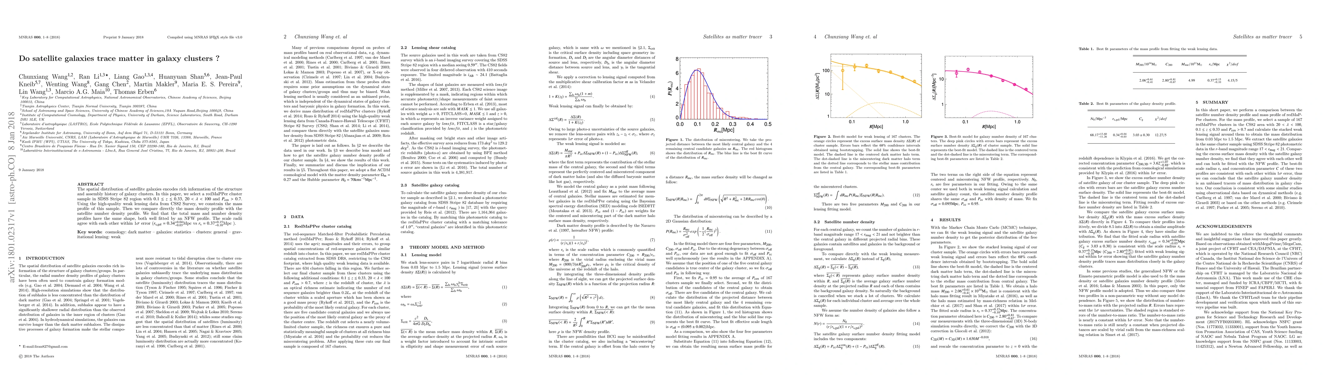 The spatial distribution of satellite galaxies encodes rich information of the structure and assembly history of galaxy clusters. In this paper, we select a redMaPPer cluster sample in SDSS Stripe 82 region with $0.1 \le z \le 0.33$, $20<\lambda<100$ and $P_{\rm cen}>0.7$. Using the high-quality weak lensing data from CS82 Survey, we constrain the mass profile of this sample. Then we compare directly the mass density profile with the satellite number density profile. We find that the total mass and number density profiles have the same shape, both well fitted by an NFW profile. The scale radii agree with each other within 1$\sigma$ error ($r_{\rm s,gal}=0.34_{-0.03}^{+0.04}$Mpc vs $r_{\rm s}=0.37_{-0.10}^{+0.15}$Mpc ).