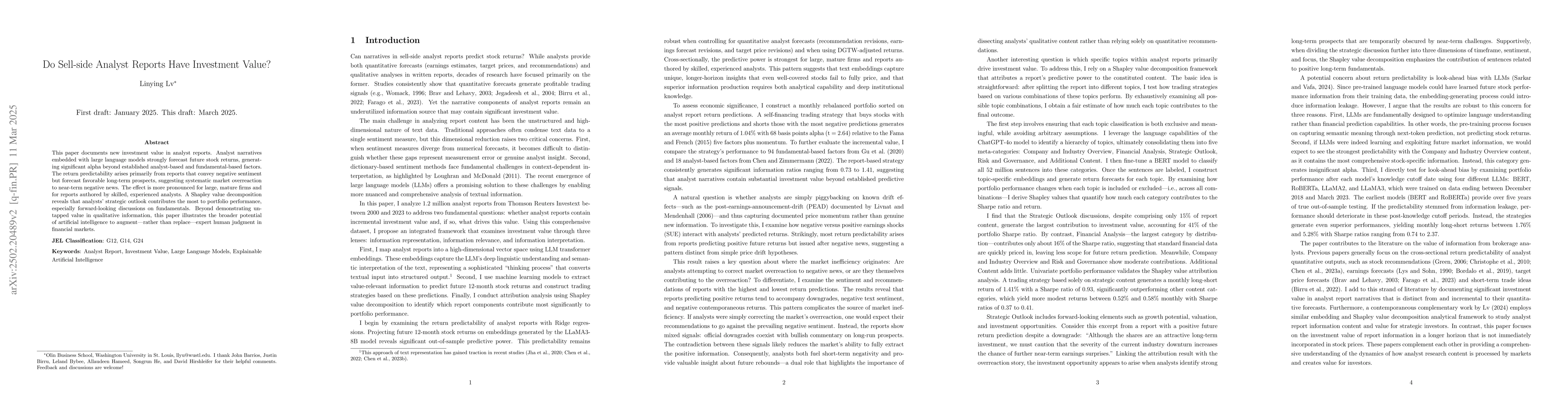 This paper finds significant investment value in sell-side analyst reports, particularly those using large language models that predict future stock returns and generate alpha. The reports with negative sentiment but favorable long-term outlooks suggest market overreaction, with the effect being stronger for large firms and experienced analysts.