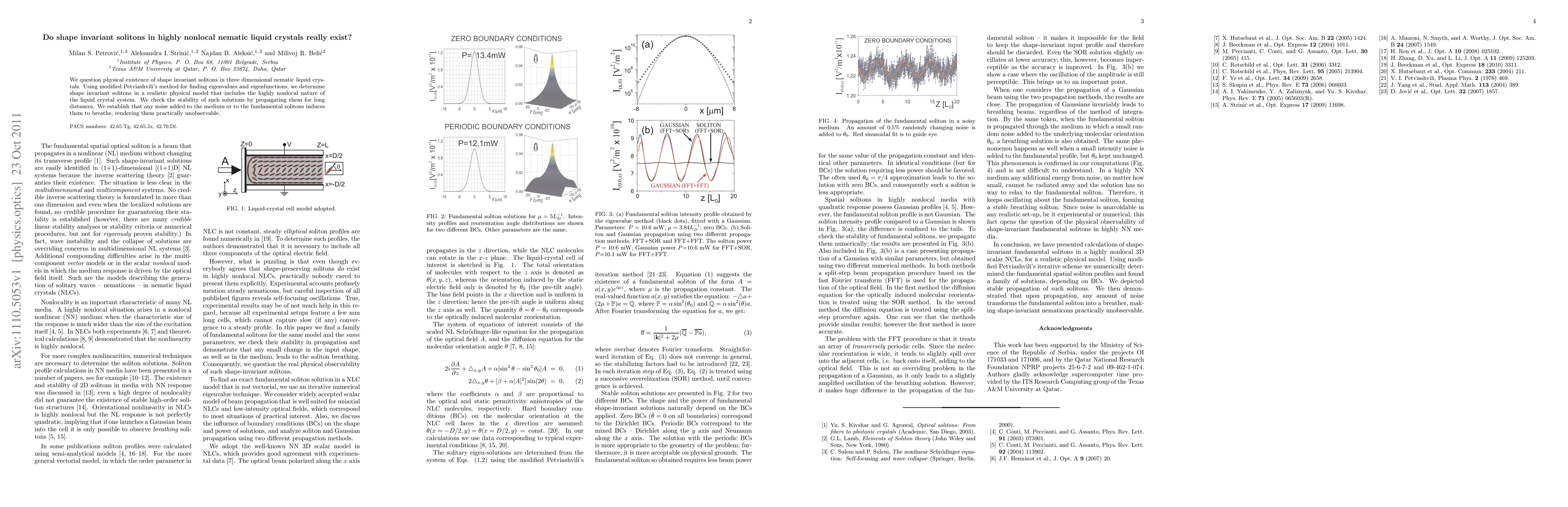 We question physical existence of shape invariant solitons in three dimensional nematic liquid crystals. Using modified Petviashvili's method for finding eigenvalues and eigenfunctions, we determine shape invariant solitons in a realistic physical model that includes the highly nonlocal nature of the liquid crystal system. We check the stability of such solutions by propagating them for long distances. We establish that any noise added to the medium or to the fundamental solitons induces them to breathe, rendering them practically unobservable.